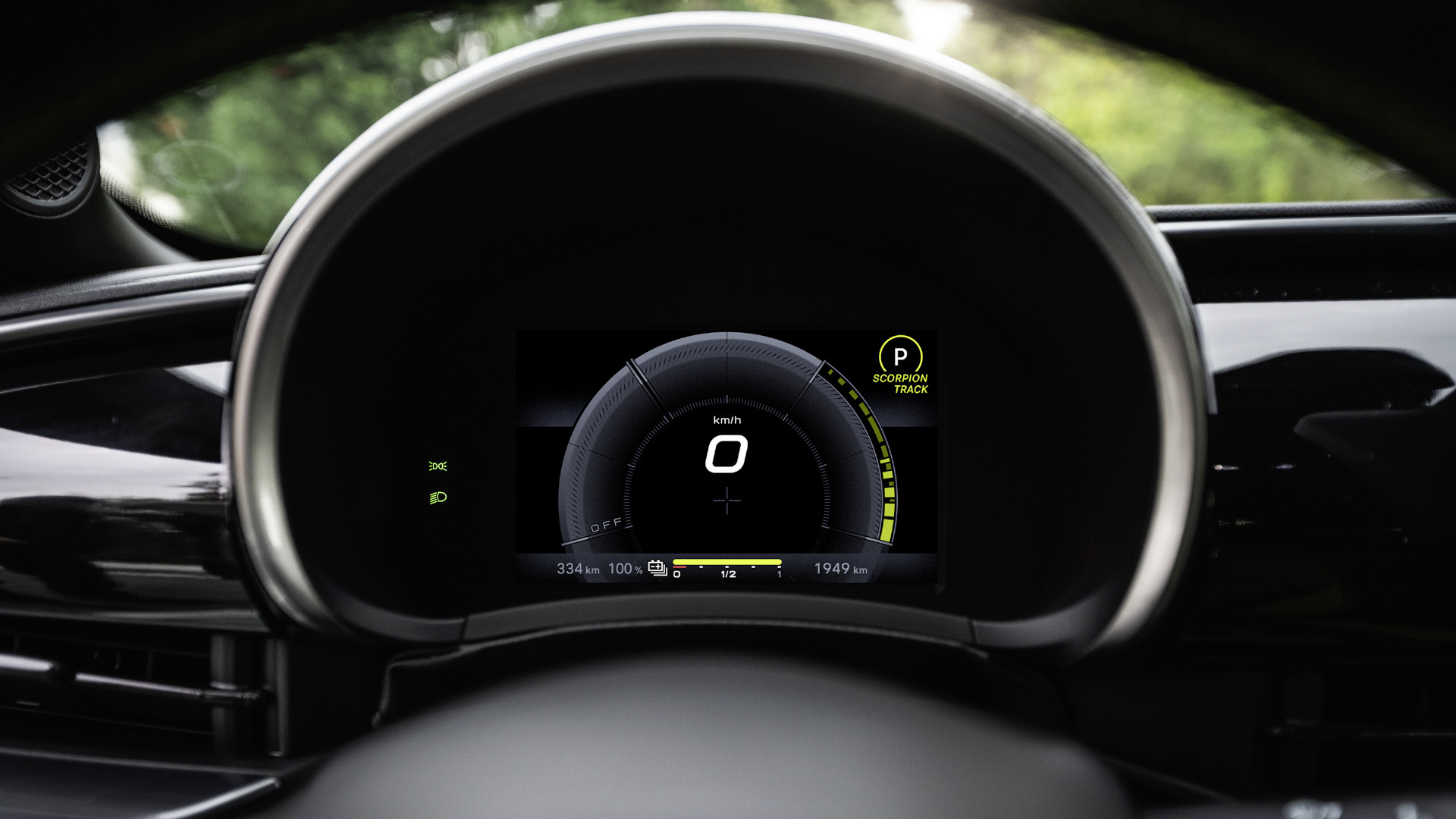 Im Turismo-Modus, in dem Reichweite zählt, produziert der Motor im 600e Turismo 110 kW (150 PS) und im 600e Scorpionissima 140 kW (190 PS). Das Drehmoment wird auf 300 Nm limitiert und die Höchstgeschwindigkeit auf 150 km/h. Im Scorpion-Straßen-Modus sind 150 kW (204 PS) sowie 170 kW (231 PS) abrufbar und bis zu 180 km/h Spitze möglich. Die maximale Geschwindigkeit von 200 km/h und die volle Beschleunigung setzt es im Skorpion-Track-Modus. Hier entfalten die Motorversionen, die sich beide auf bis zu 345 Nm Drehmoment aufschwingen, das volle Potential.