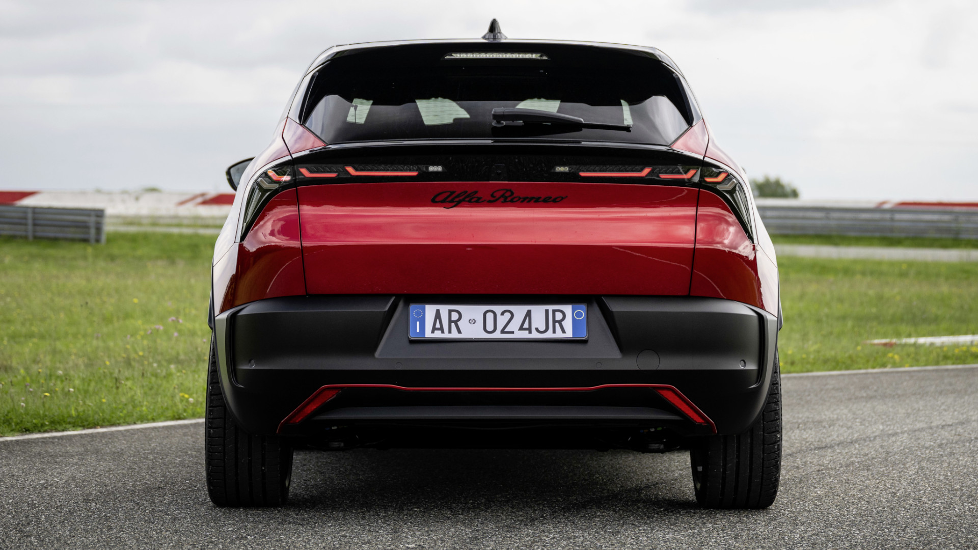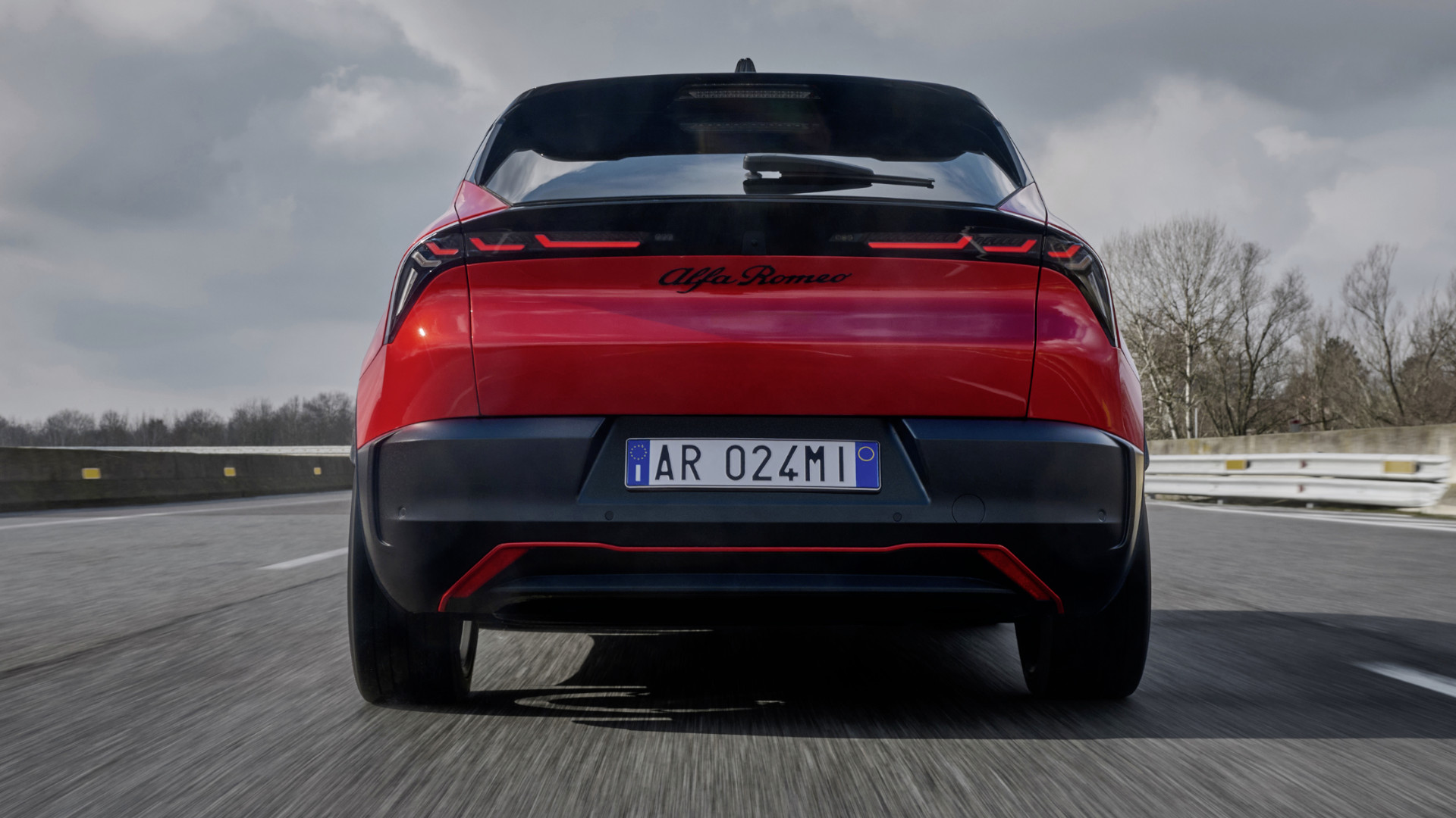 Das Ergebnis ist tatsächlich typisch Alfa, mit sportlicher Front und rasant nach hinten fliehenden Linien. Hier habe man sich von dem Sportwagen 8C inspirieren lassen, was natürlich maßlos übertrieben ist. Auch im Innenraum dreht sich alles um die Fahrenden. Runde Tachoelemente, obwohl sie eigentlich nicht nötig wären (das Display ist rechteckig), ein tief sitzendes Infotainment. Das Lenkrad vermittelt ein sportliches Grundgefühl, die Innenausstattung nicht ganz so sehr. Hier kommt viel Plastik zum Einsatz, das nicht so hübsch aussieht und sich auch nicht gut anfasst. Das ist aber mittlerweile Standard bei E-Autos, auch bei Fahrzeugen, die viel teurer sind. Vorne ist viel Platz, hinten eher nicht, dafür ist der Kofferraum mit 400 bis 1.265 Liter für das Kleinwagen-Segment ziemlich groß.