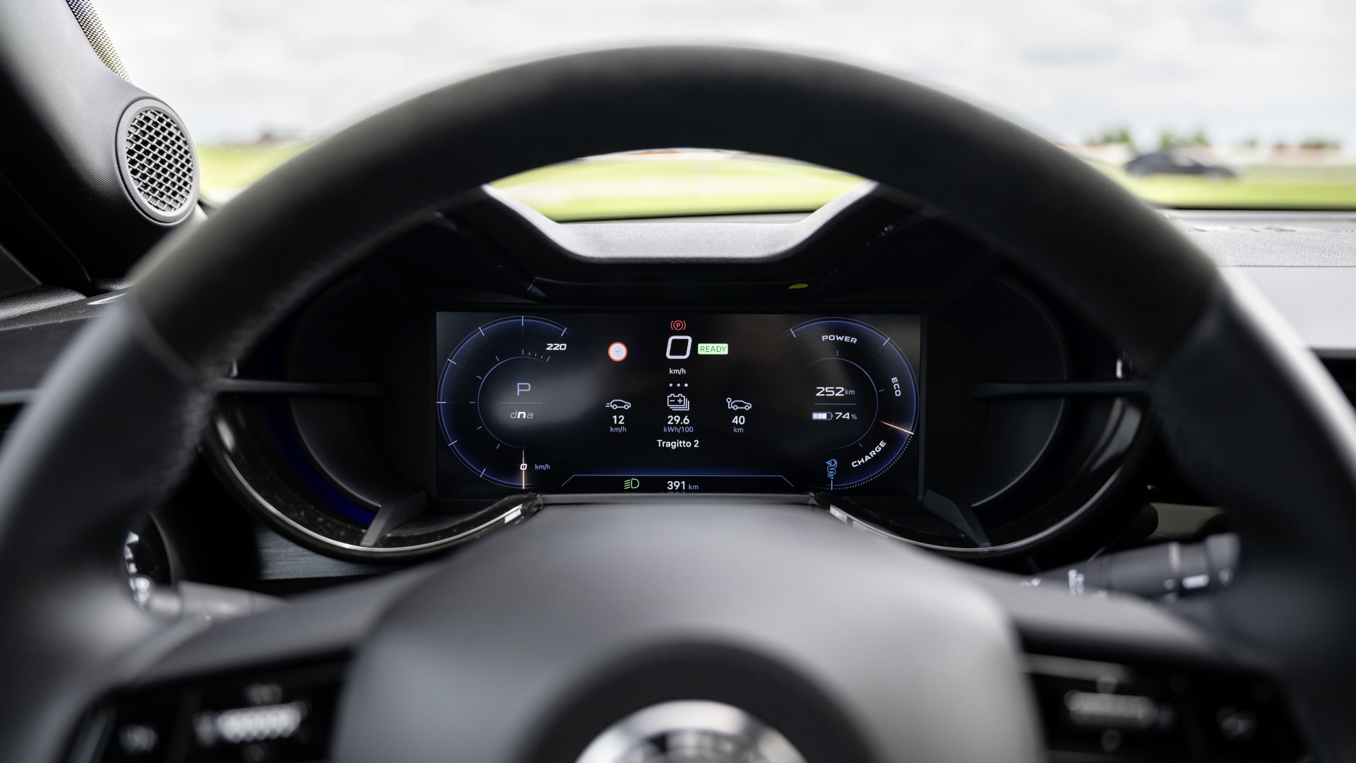 Mit einer Bildschirmdiagonale von zehn Zoll ist das Infotainment des Elettrica im aktuellen Vergleich eher klein dimensioniert, es erfüllt aber seinen Zweck. Auf dem Display lassen sich Direktzugriffe für häufig genutzte Funktionen ablegen, die Navigation errechnet automatisch passende Ladestopps. Restaurants unterteilt die Software übrigens nach Küchen, also deutsch, griechisch, italienisch und so weiter. Ein cleverer Einfall. Wer lieber per Sprache Befehle eingeben will, kann das mit ChatGPT als Sprachassistent. Die Technologie wird mit „Hey, Alfa!“ aktiviert.