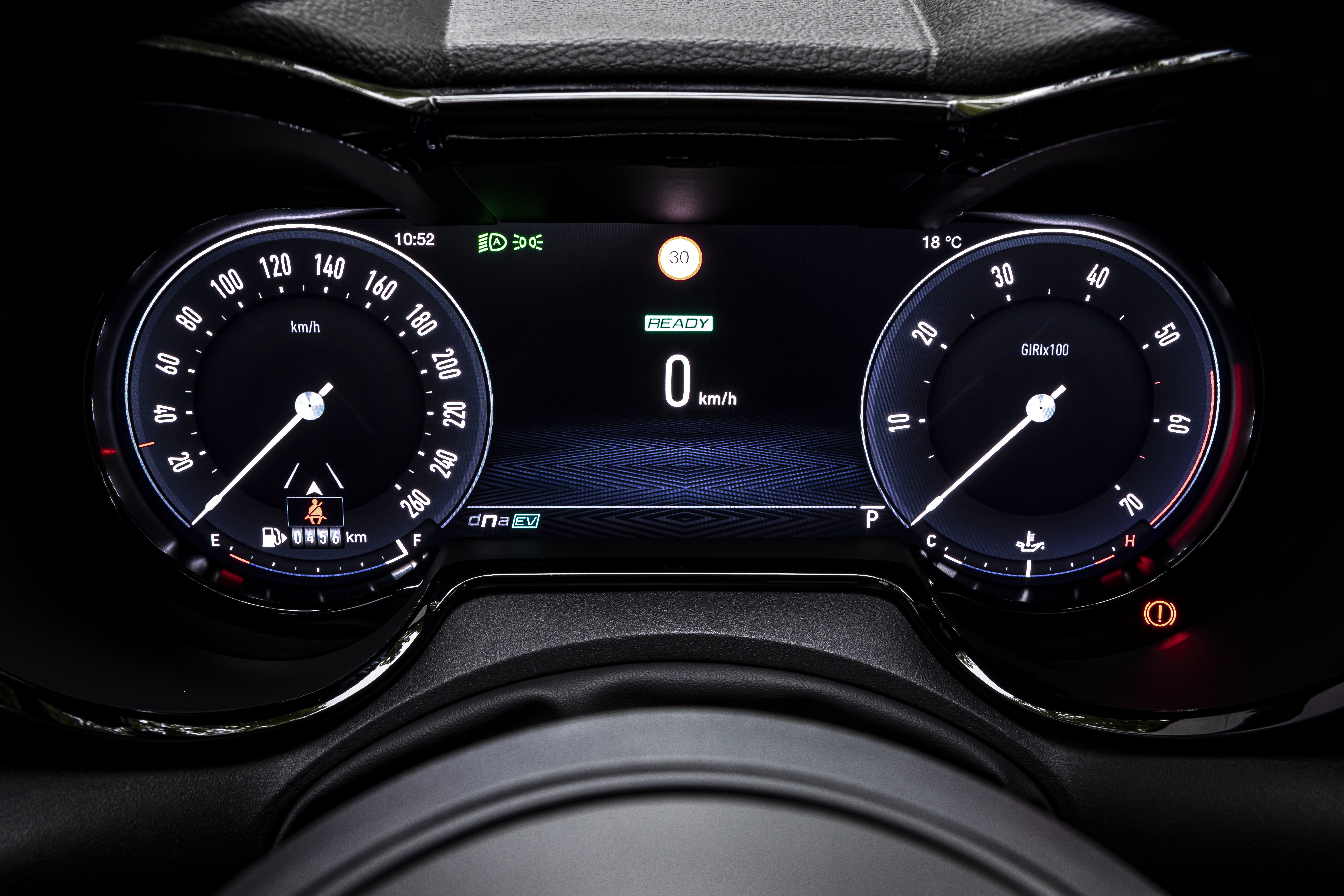 Mit der Digitalisierung des Cockpits erscheinen die Navibefehle und die Navigationskarte direkt hinter dem Lenkrad, was klar von Vorteil ist, weil es den Blick weniger vom Verkehr ablenkt als die Navikarte auf dem zentralen Bildschirm. Auf dem Bildschirm, der in der Diagonale 10,25 Zoll misst, laufen die Infotainment Menüs und noch einiges mehr auf.