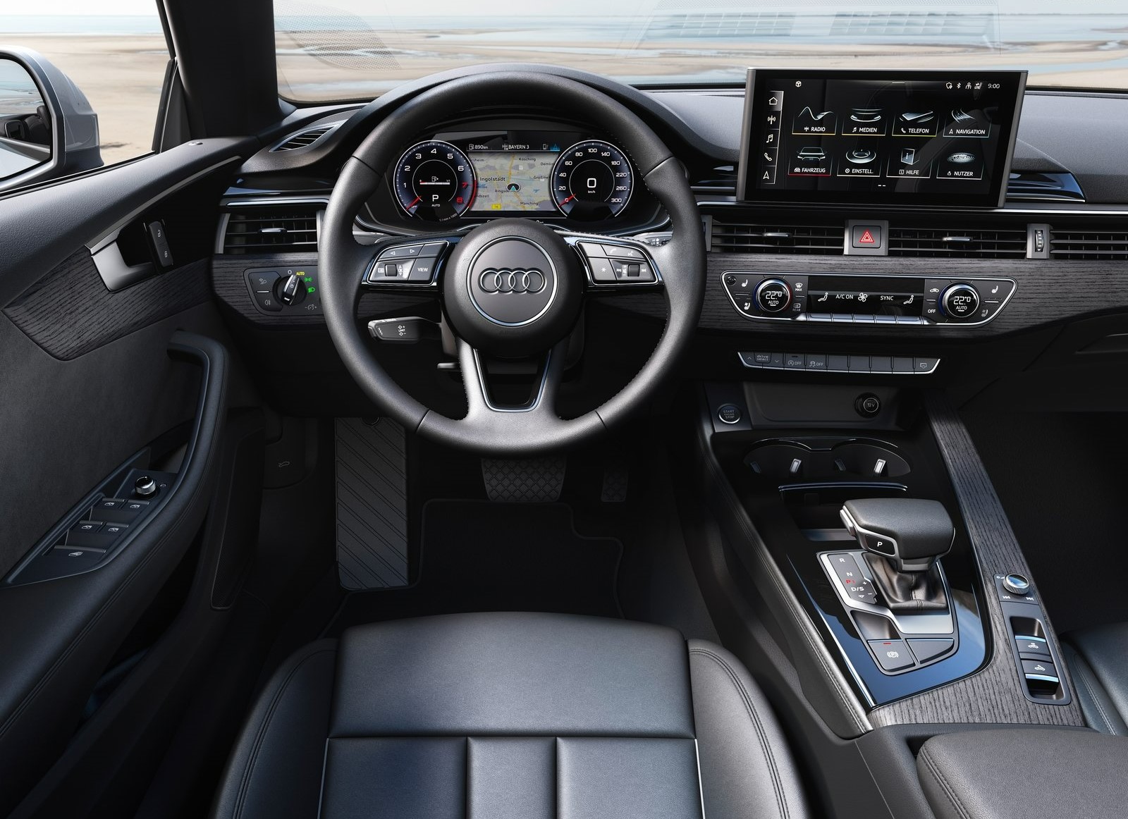 Nimmt man Platz im Audi A5 Cabrio, blickt man auf das ansehnliche A5-Cockpit mit dem 8,3-Zoll-Bildschirm, dem durchgehenden Luftdüsenband und auf das spektakuläre, wenngleich optionale Digitalcockpit.