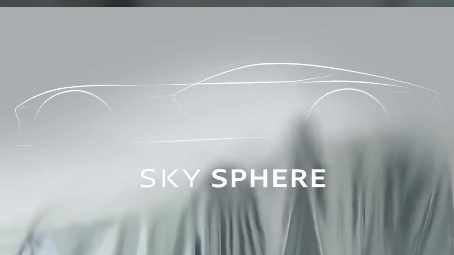 Auf dieser Skizze kann man die ultralange Motorhaube und die niedrige Dachlinie erkennen. “Sky” könnte aber auch auf ein Cabrio hinweisen, es wäre also nicht verwunderlich, wenn es sich um ein faltbares Hardtop handeln würde.