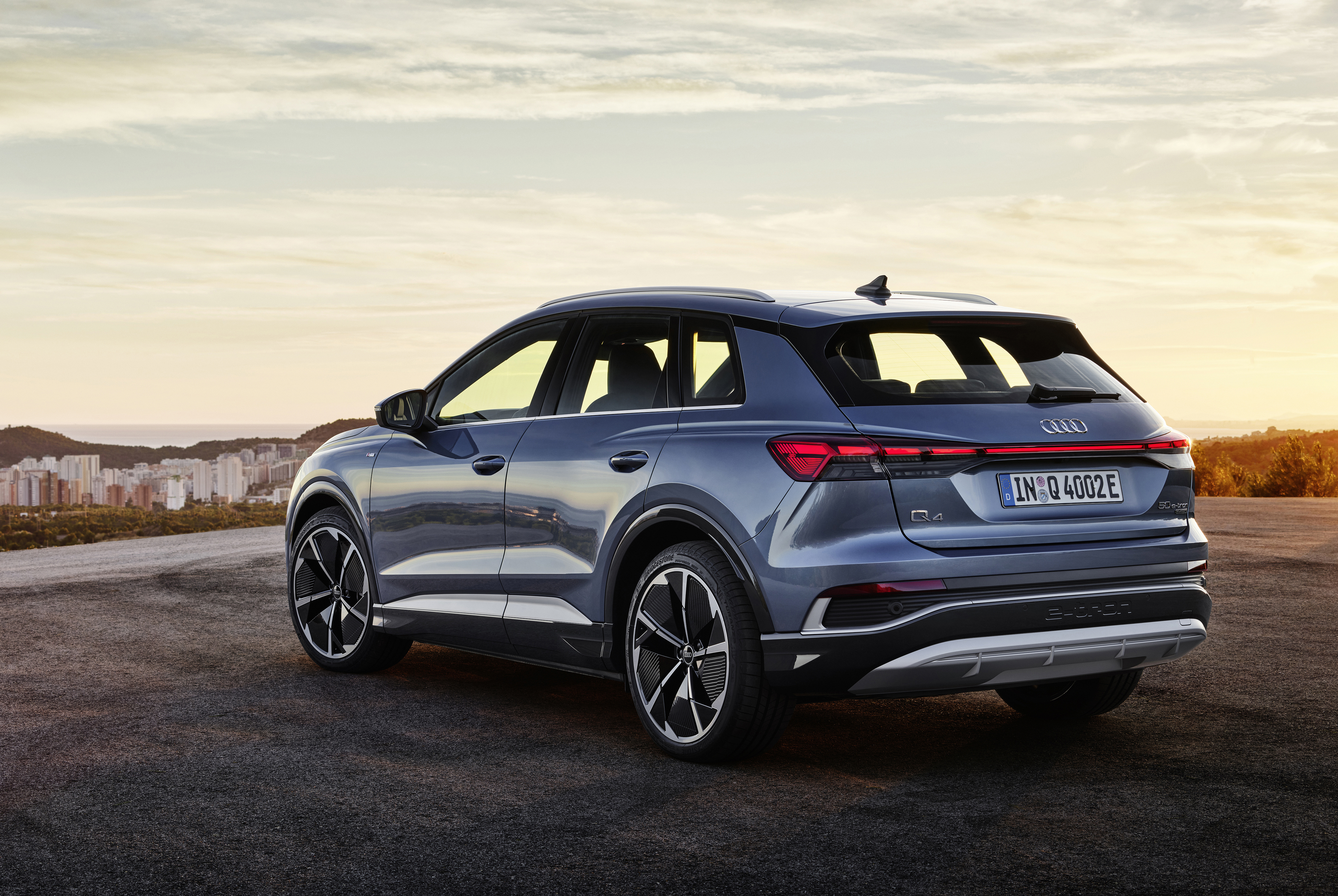 Außen hat der Q4 e-tron einen attraktiven Blick, der zudem die Sicherheit verbessert. Denn zur Serie zählen bereits LED-Scheinwerfer und -Heckleuchten. Optische Highlights setzt das Glanzpaket, das Fensterzierleisten in eloxiertem Aluminium beinhaltet und gut zur Aluminium-Dachreling passt.