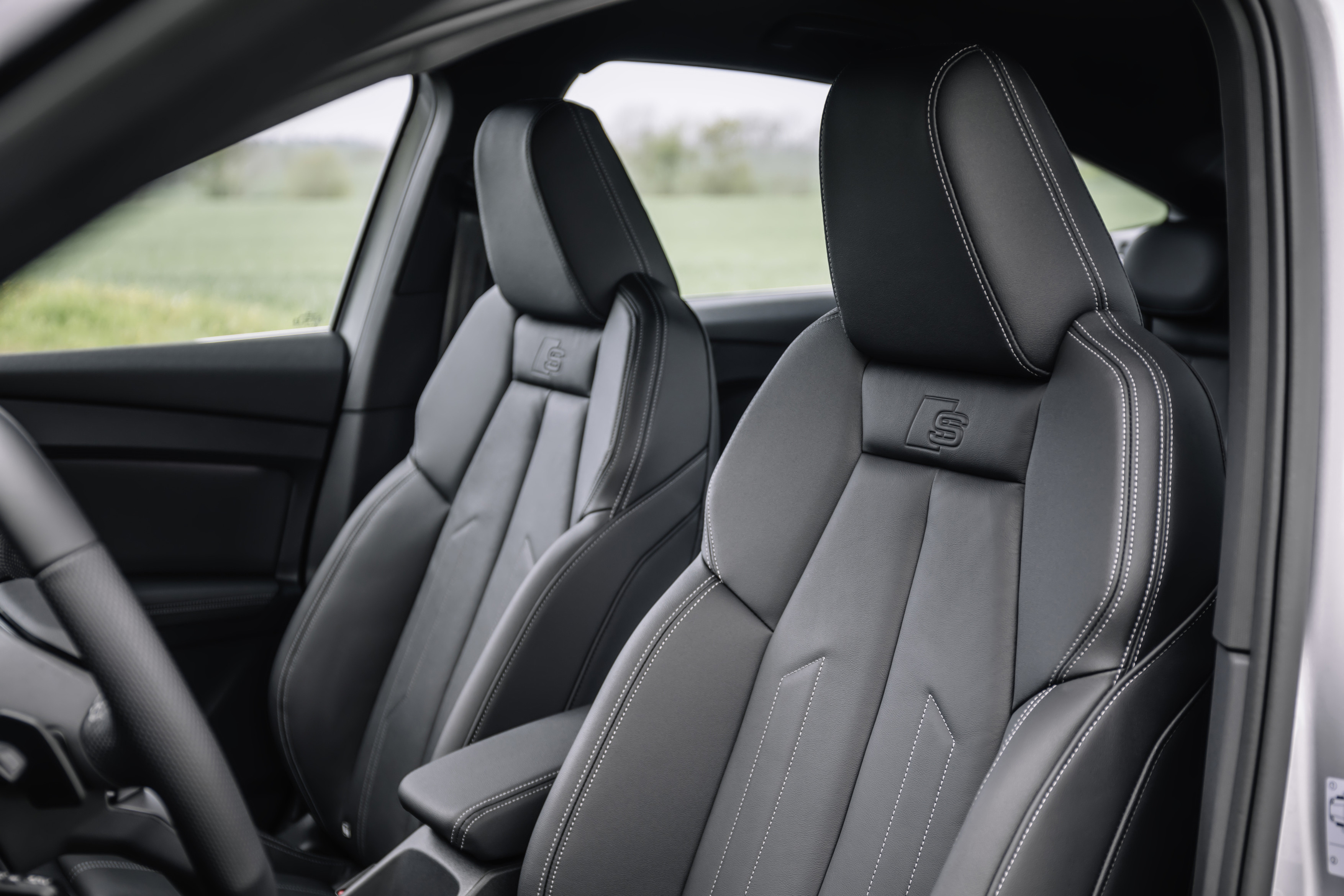 Vom Auftritt und im Interieur. Die Cockpitlandschaft ist typisch Audi: reduziert, aber hochwertig. Das unten abgeflachte Lederlenkrad und das Digitalcockpit bestimmen den ersten Eindruck. Das Cockpit ist leicht zum Fahrsitz geneigt. Die Instrumente lassen sich individuell konfigurieren.