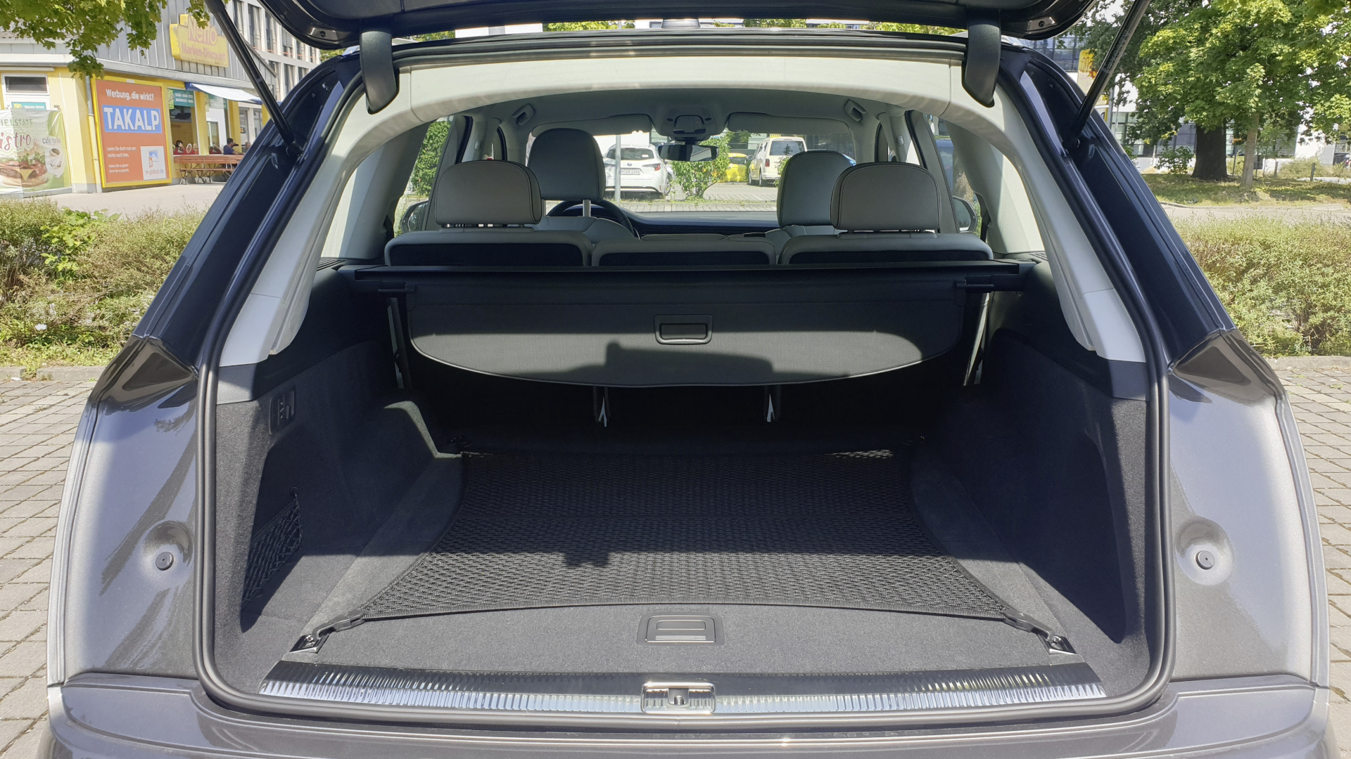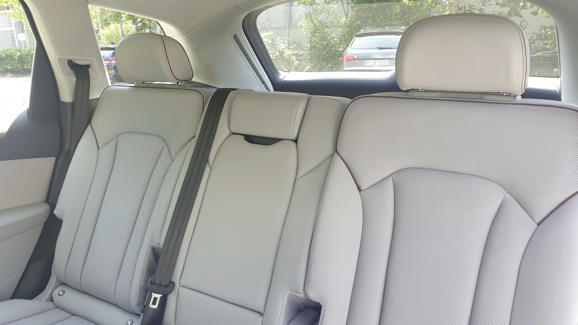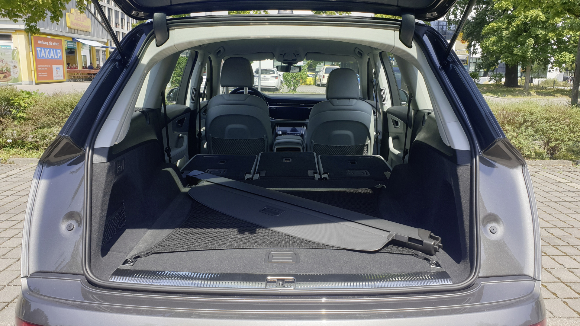 Optional erhält man den Audi Q7 auch mit sieben Sitzen. Bei voller Sitzbelegung kommen immer noch 295 Liter hinter den Sitzen sechs und sieben unter. Hinter der 2. Sitzreihe sind es noch 793 Liter, bei umgeklappter dritter und zweiter Sitzreihe passen maximal 1.908 in den 7-Sitzer.
