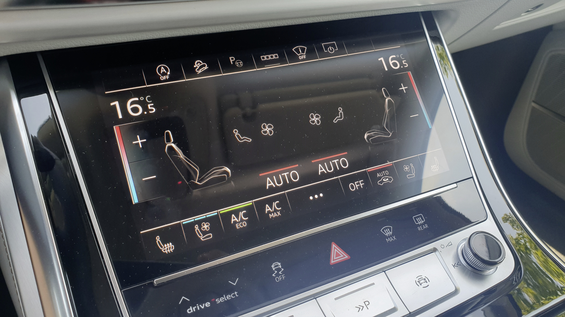 Die Feinabstimmung erfolgt in sieben Modi. Bei Offroad-Fahrt, die mit der Nick- und Wankwinkelanzeige zu überwachen ist, beträgt die Bodenfreiheit maximal 24,5 Zentimeter. In solchen schlüpfrigen Momenten können, wenn die Räder einer Achse plötzlich den Grip verlieren, bis zu 70 % der Kräfte nach vorn und maximal 85 % nach hinten umgeleitet werden. Im normalen Fahrbetrieb wird die Kraft sicher und souverän im Verhältnis 40:60 zwischen Vorder- und Hinterachse verteilt.