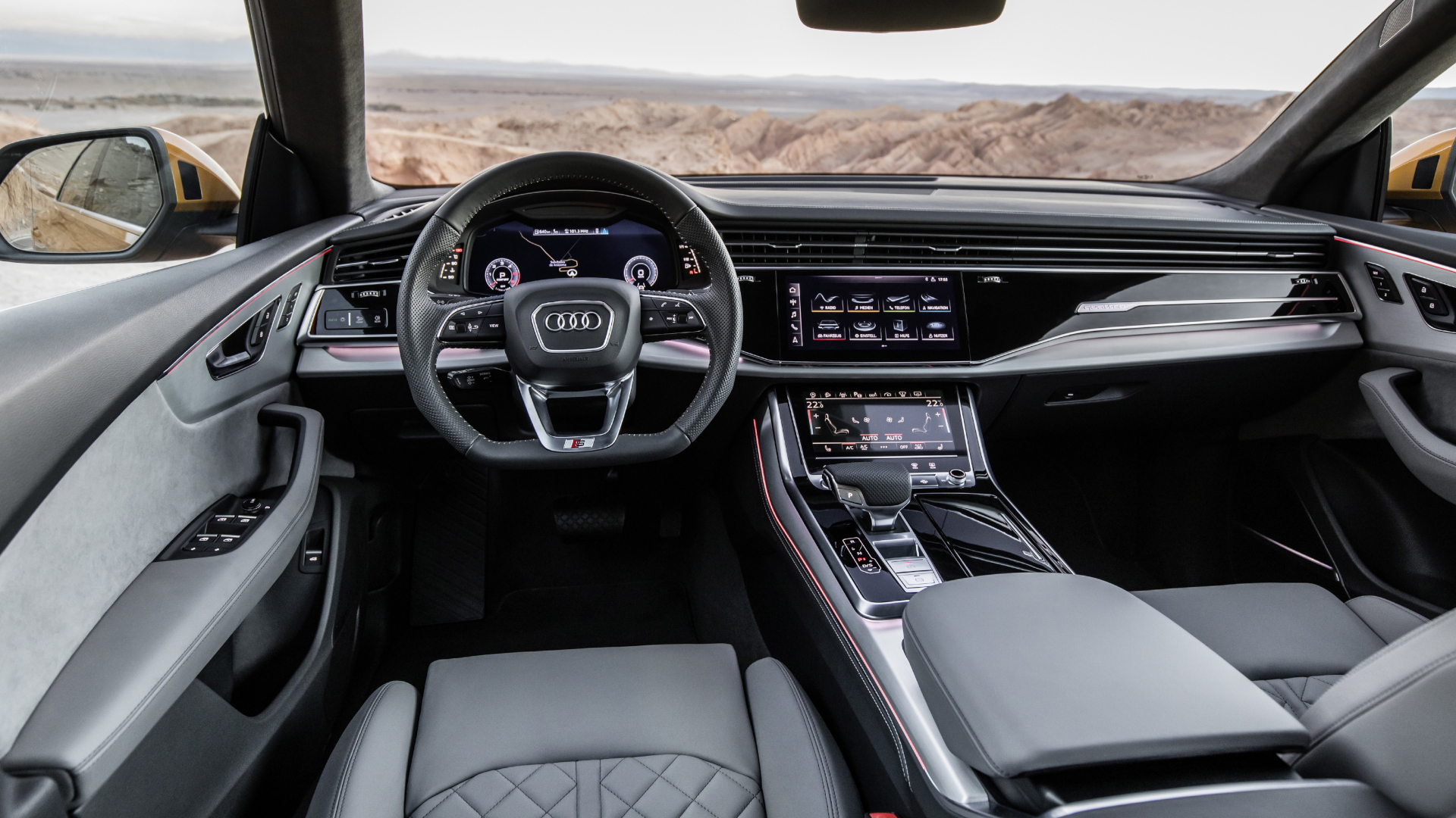 Von der Materialqualität der Kunststoffe, der Hölzer und des Leders erwartet man im Audi Q8, was man in jedem Audi Flaggschiff erwartet: Ein Maximum an Verarbeitung und Hochwertigkeit. Das Infotainment mit LTE-Internet, mitlernender Spracherkennung und mitdenkender Navi sowie die Sicherheitsausstattung gehören zum Modernsten, was der Markt zu bieten hat. Die tastenfreie Bedienung am Touchscreen, die manchmal vom Verkehr ablenkt, ist aber nicht jedermanns Sache.