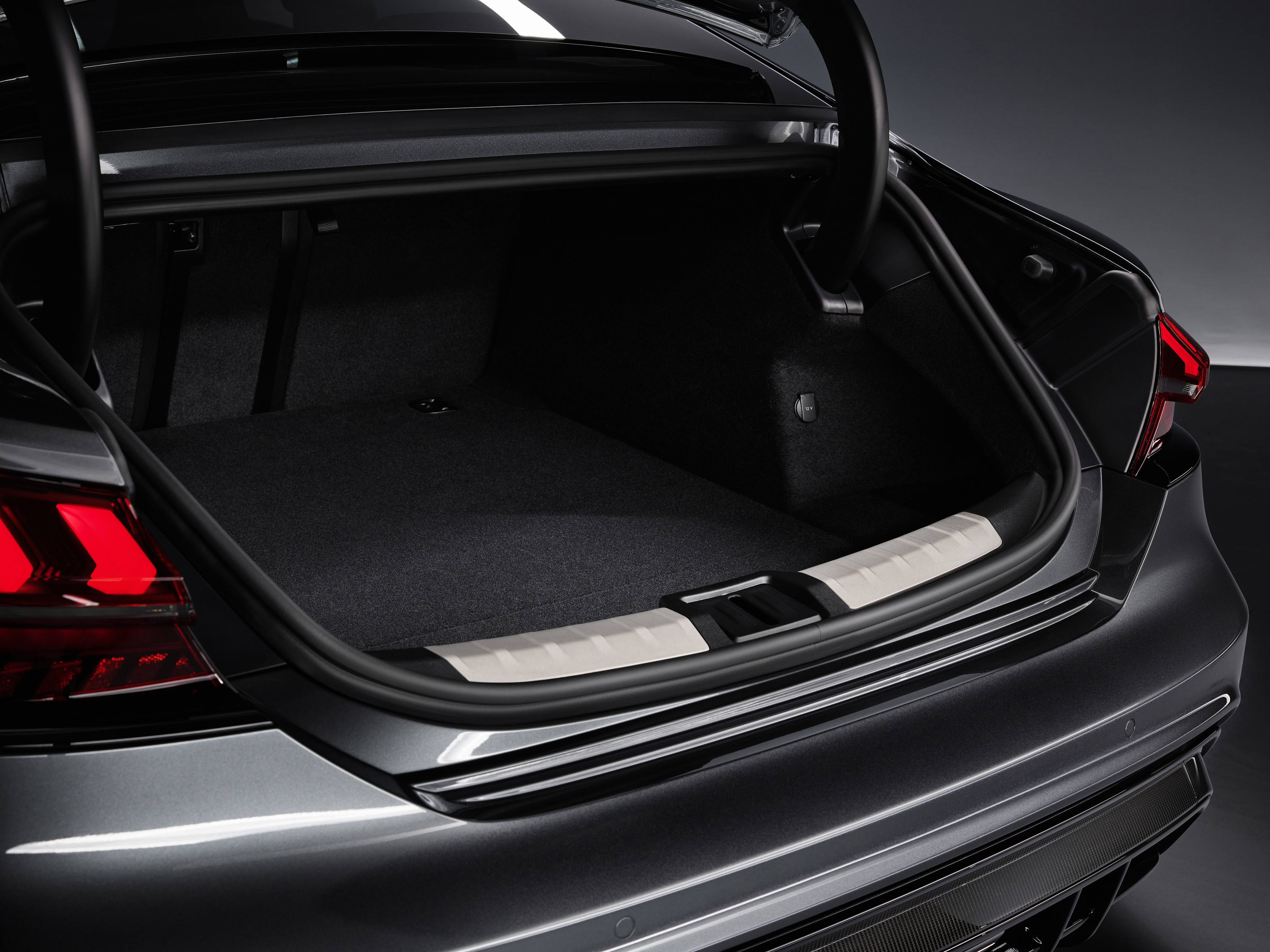 Zugegebenermaßen ist die Lage nicht ganz so prekär, wie man aus dem obigen Absatz zunächst vermuten würde – Arm- und Beinfreiheit liegen noch im Rahmen, größere Köpfe, Steckfrisuren oder ausladende Hüte sind unter der abfallenden Dachlinie aber eher fehl am Platz. Ein bisschen Übung erfordert darüber hinaus das Einsteigen in den Fond – das will mit einer ausgeklügelten Einfädelstrategie gelernt sein. Verfügen die potentiellen Fahrgäste allerdings über entsprechende Kenntnisse und die richtige Körpergröße, können diese dem Fahrspektakel durchaus bequem beiwohnen. Platz für Gepäck bleibt übrigens auch noch: 350 Liter fasst der Kofferraum, nochmal 85 Liter stehen unter der Motorhaube im Frunk bereit.