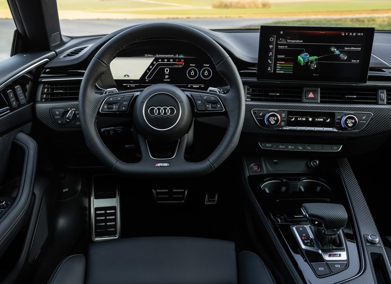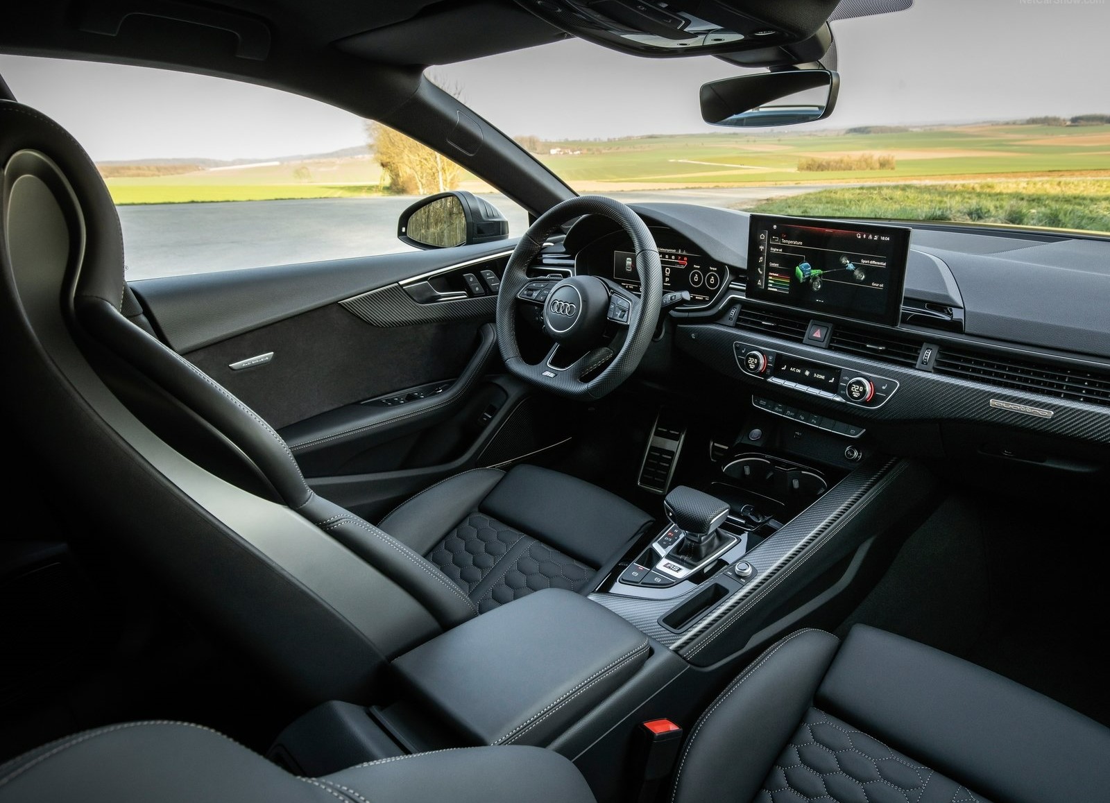Im typischen Stil von Audi präsentiert sich der Innenraum, der im Platzangebot gegenüber der Vorgeneration des A5 Sportback nur einen Hauch in den Dimensionen zulegt hat. Im Cockpit erwartet Sie erstmals das brillante digitale Cockpit (Audi Virtual Cockpit). Das Infotainment wurde modernisiert und in der Sicherheitsausstattung fährt der RS5 Sportback mit modernen Fahrassistenzsystemen auch wieder ganz vorne mit.