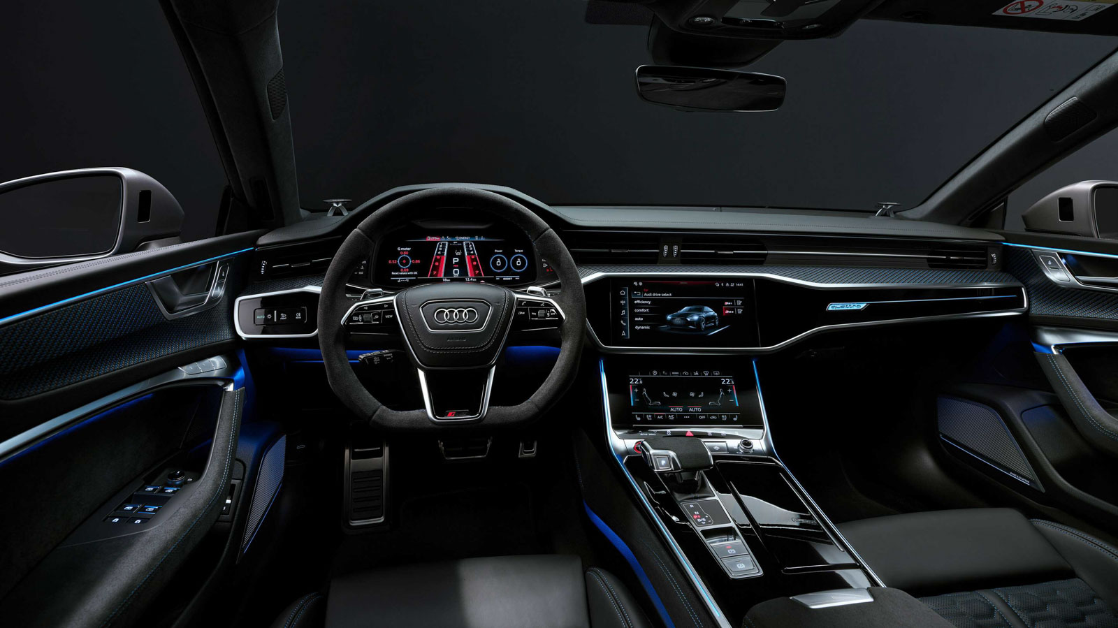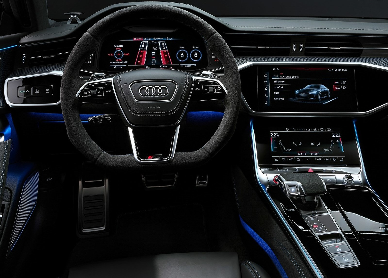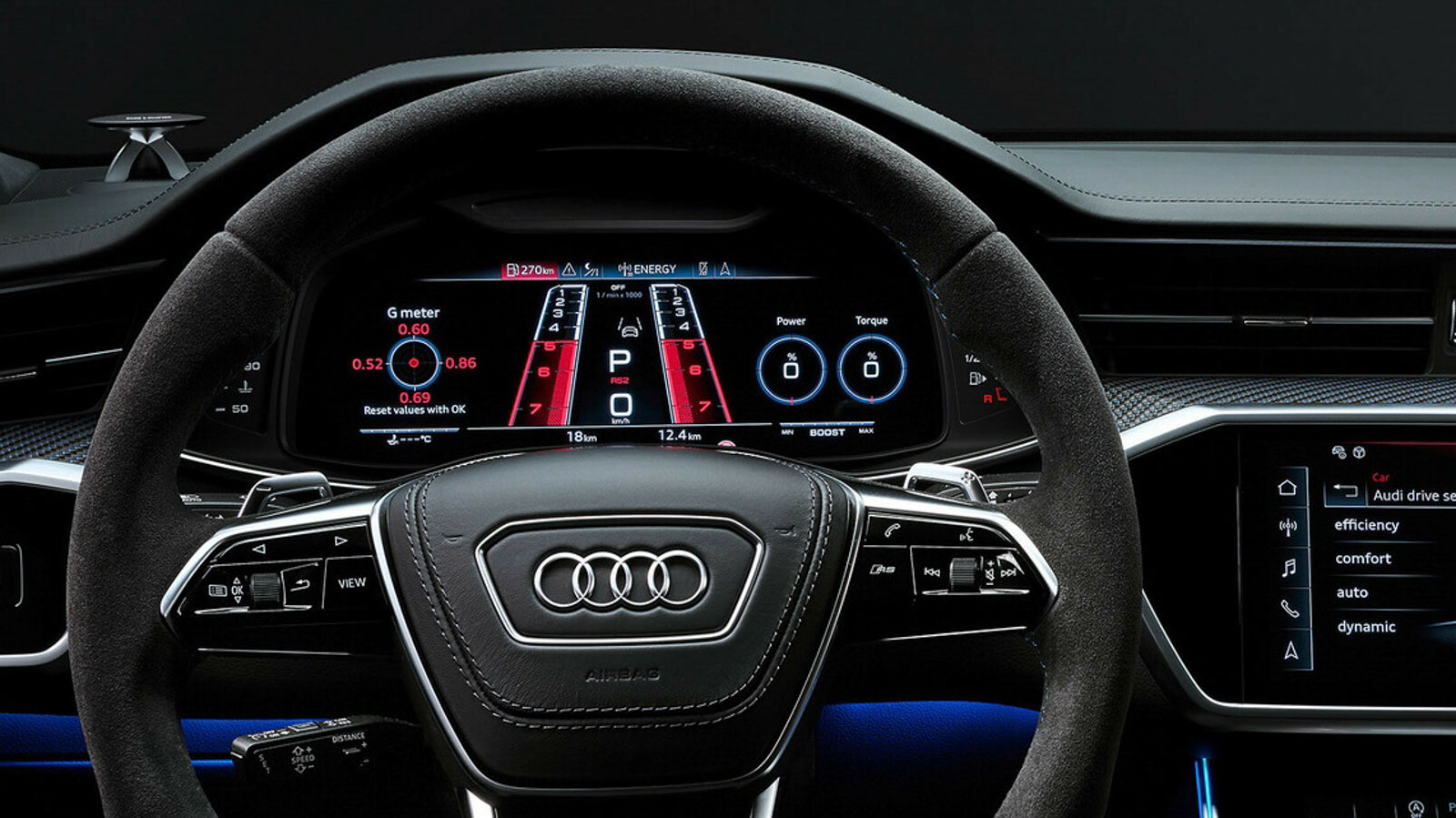 Der RS7 Sportback ist die Topversion des Serienmodells A7 Sportback und kommt mit 21-Zoll-Leichtmetallfelgen, den RS-Sportsitzen, einer 4-Zonen-Klimaautomatik sowie dem virtuellen Fahrerinformationssystem mit 10,1-Zoll-Farbdisplay und MMI Navigation plus.