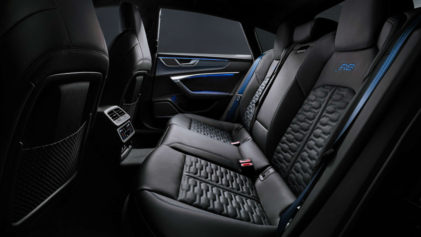 Das Platzangebot in Sachen Kopf- und Beinfreiheit fällt auf den hinteren Plätzen des Audi RS7 Sportback angemessen aus. Das Kofferraumvolumen beträgt 535 Liter und bis zu 1.390 Liter bei umgeklappten Rücksitzen.