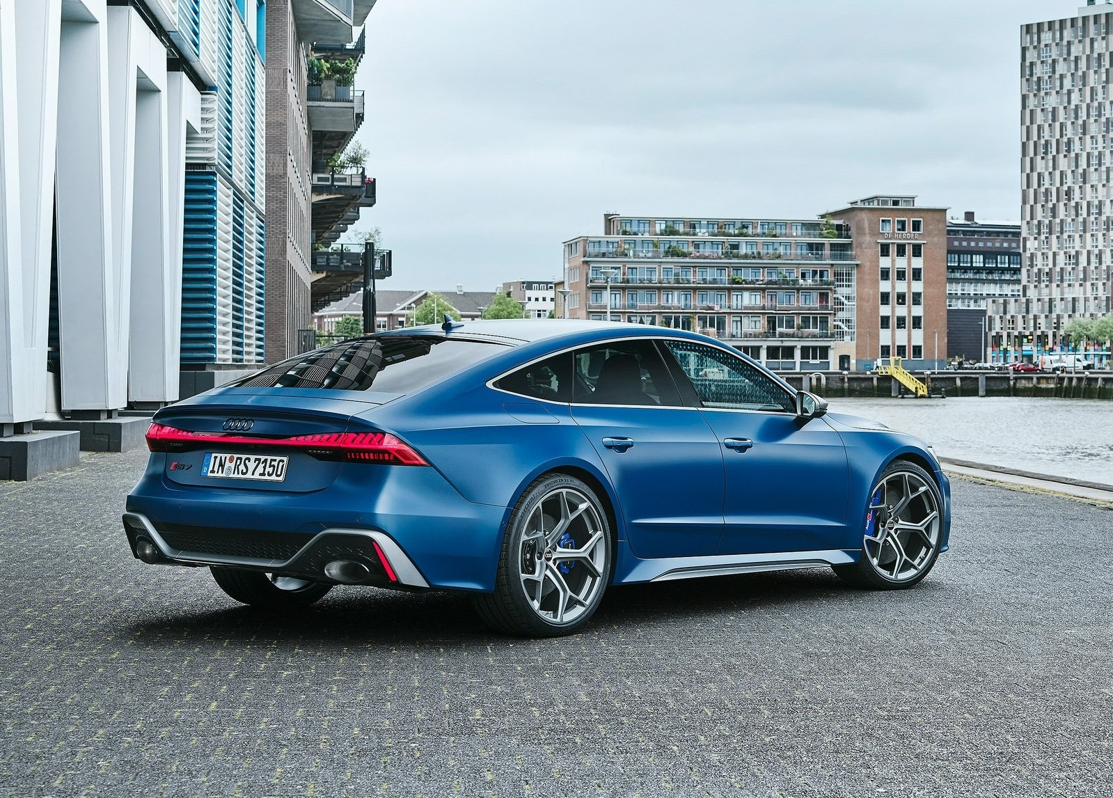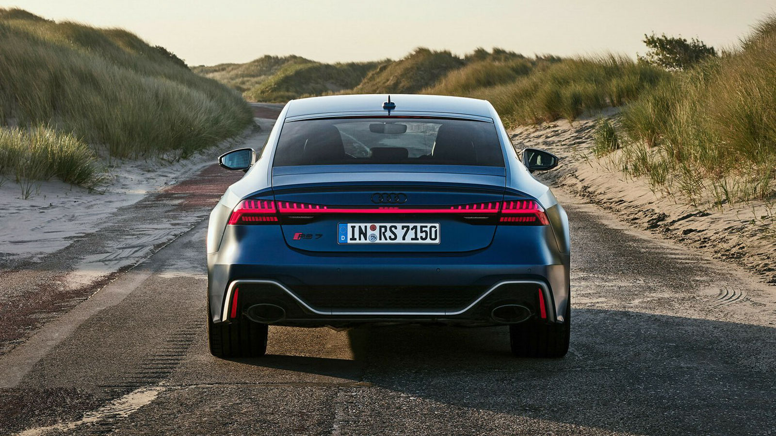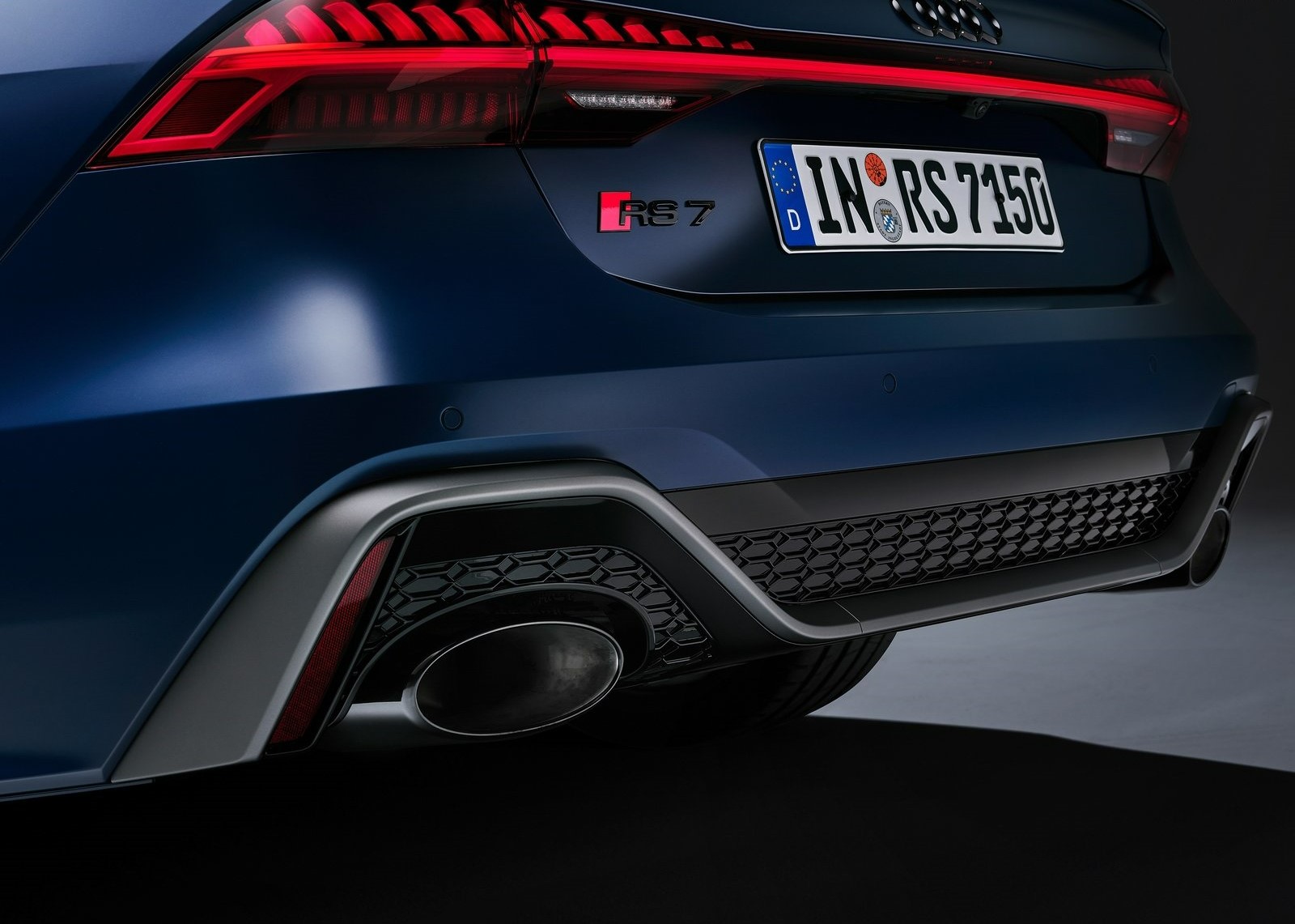 Der RS7 Sportback baut als viertüriges Coupé auf dem A6 auf und verändert dessen Form leicht weg vom klassischen Limousinen-Design hin zum dynamischen Heck, das sich mit der flach abfallenden Dachlinie weit nach hinten zieht. Mit rund fünf Metern Länge ist der RS7 eines der größten Sportback-Modelle von Audi, die mittlerweile für beinahe jedes Modell als Variante angeboten werden.