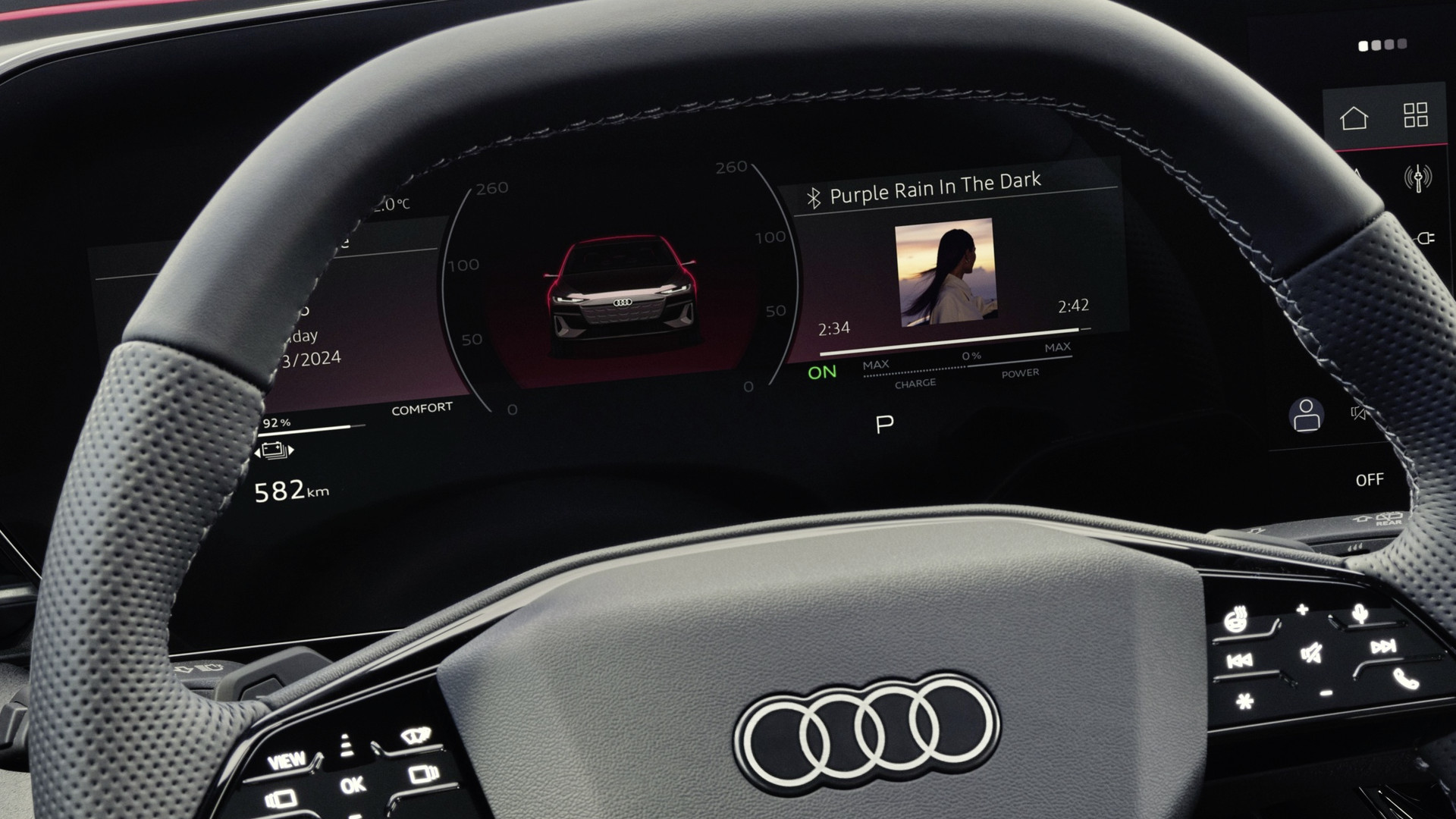 Dazu gehören die optional erhältliche Bang & Olufsen Soundanlage, ein Panorama-Glasdach mit schaltbarer Transparenz oder Sportsitze mit Belüftung, wenn die Fahrweise mal schweißtreibend wird.