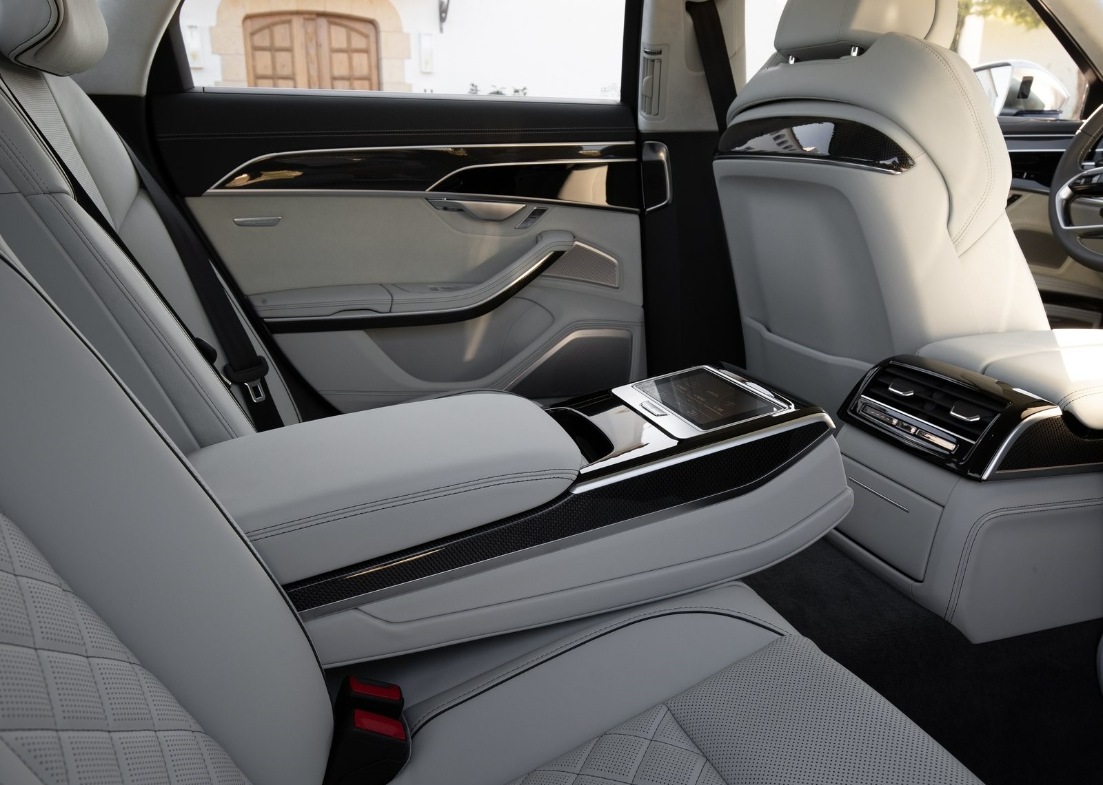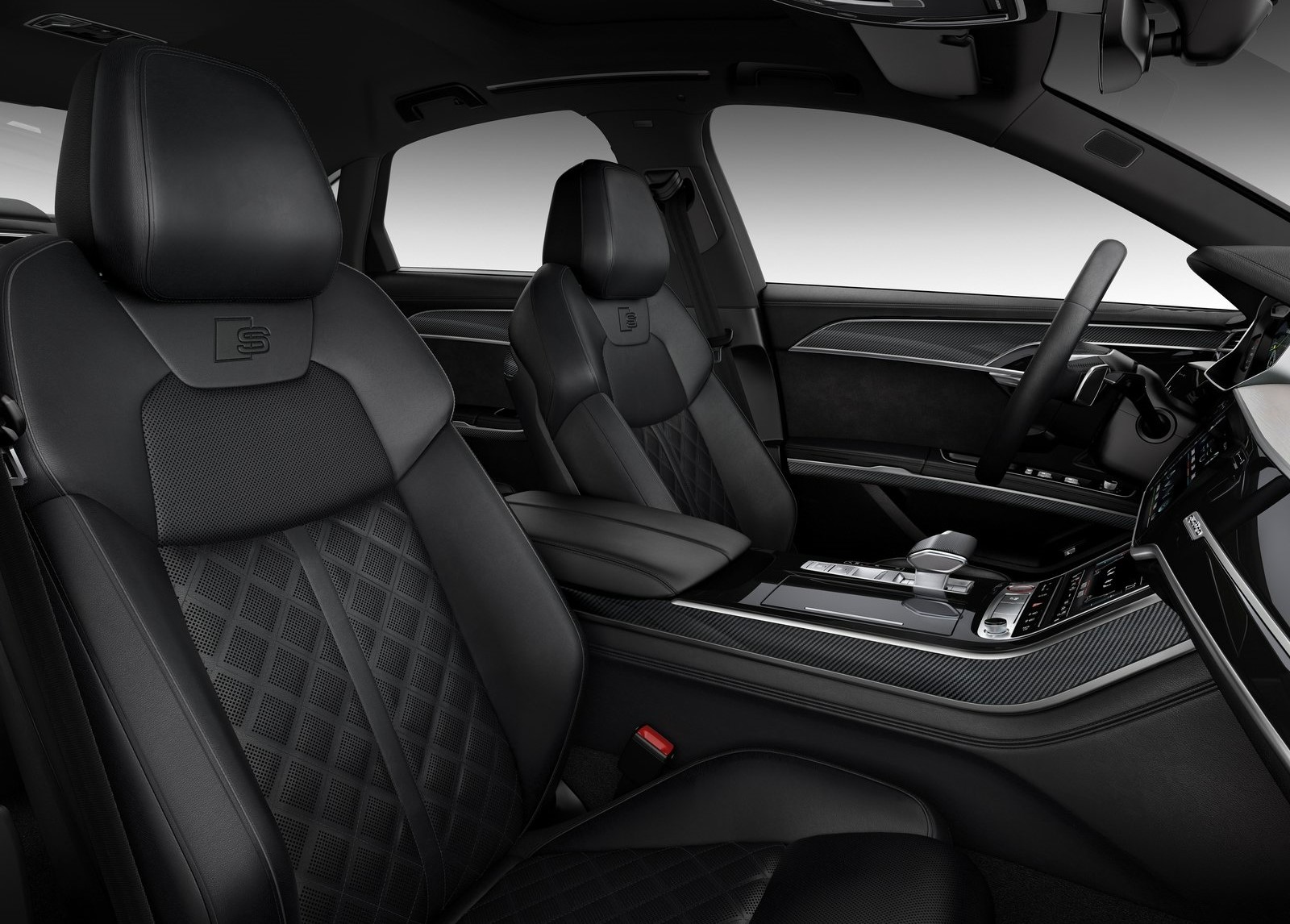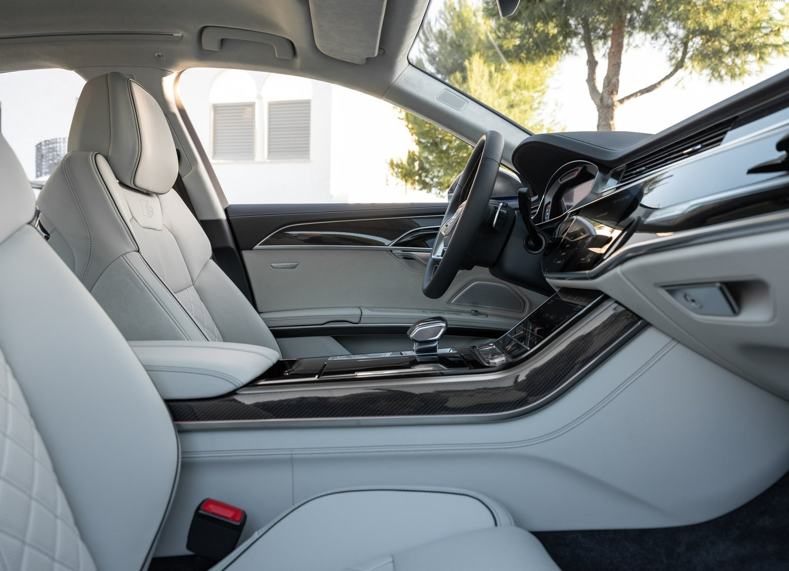 Der S8 bleibt der S8! Audi erlaubt bei der Sportwagen-Variante des A8 keine große Auswahl, die Kundschaft muss das Auto so nehmen, wie es ist. Das Top-Modell kommt serienmäßig unter anderem mit einer Sitzheizung vorn und hinten, einem Multifunktions-Lederlenkrad, einer 4-Zonen-Klimaautomatik, HD-Matrix-LED-Scheinwerfern und 20-Zoll-Leichtmetallrädern.