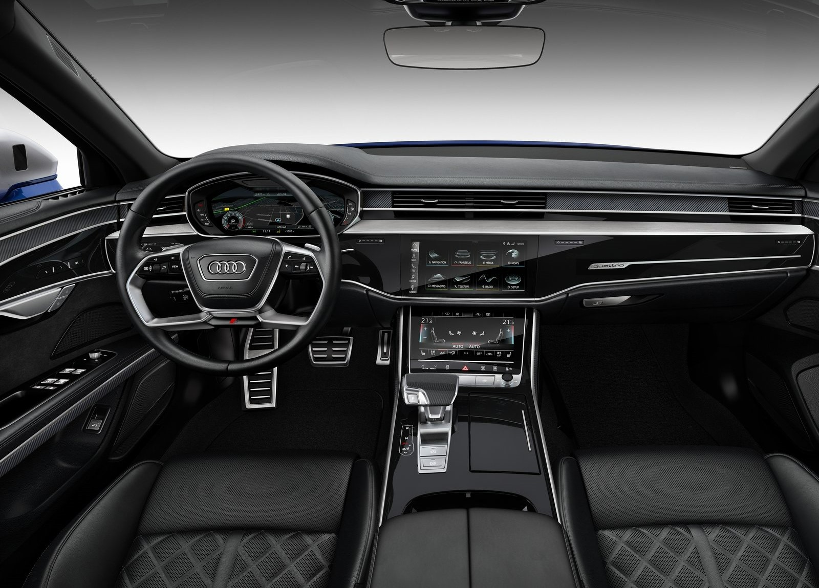 Das Interieur des Audi S8 ist modern und elegant gestaltet und bietet eine Vielzahl an hochwertigen Materialien und Komfortfunktionen. Das Modell ist mit einem großen Touchscreen-Display, einem virtuellen Cockpit und einem hochwertigen Soundsystem ausgestattet. Das moderne Infotainment-System bietet Navigation, Konnektivität und Unterhaltungsfunktionen.