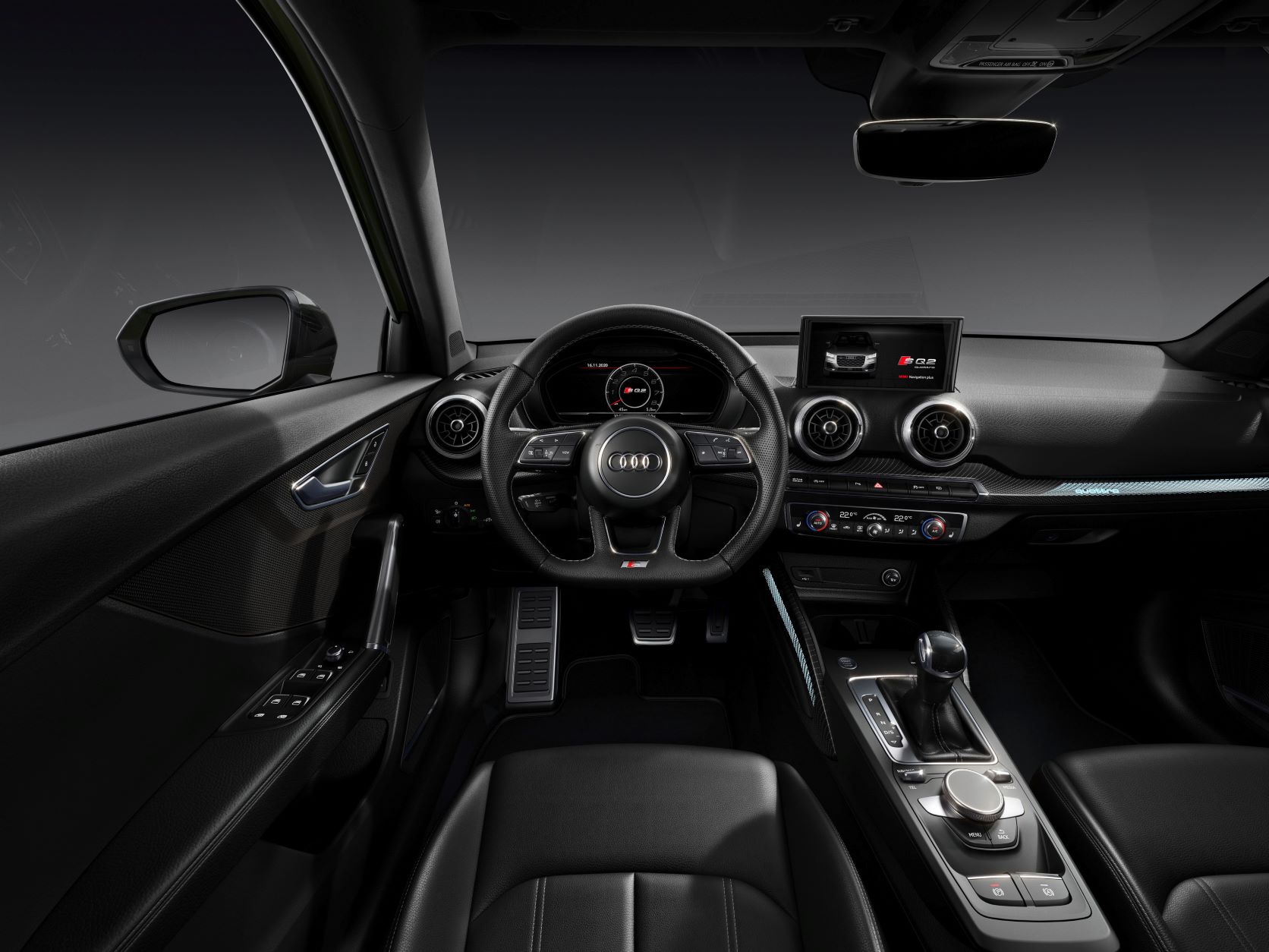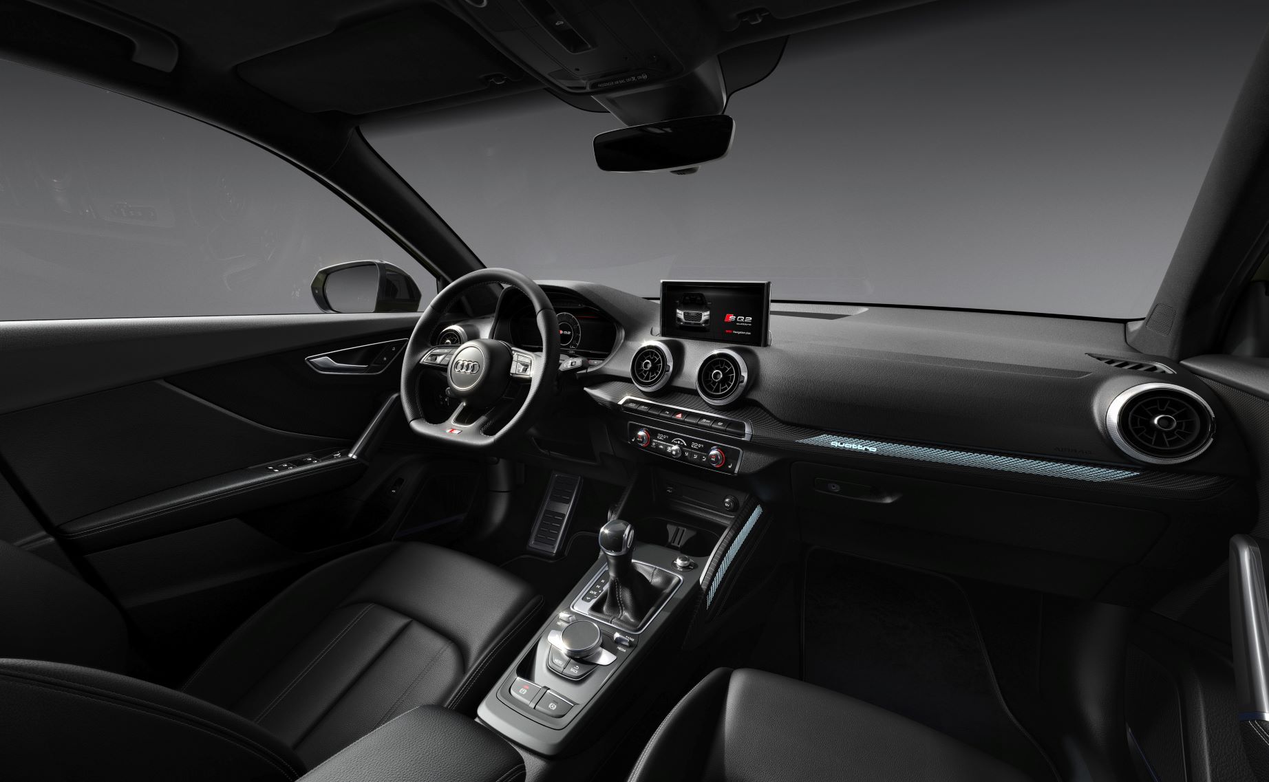 Der SQ2 kommt serienmäßig mit einem S line-Multifunktions-Lederlenkrad, 18-Zoll-Leichtmetallfelgen, Sportsitzen vorne, einer Einparkhilfe hinten, einer Komfortklimaautomatik und Allradantrieb.