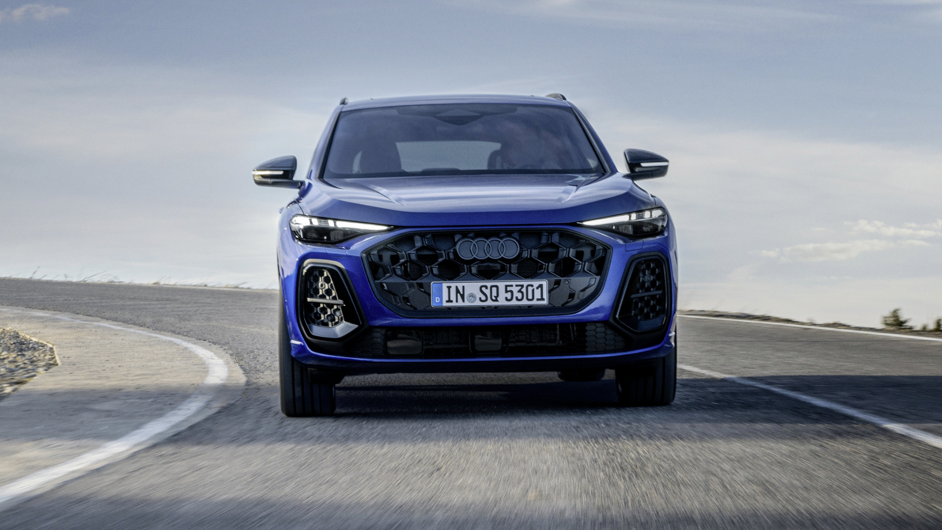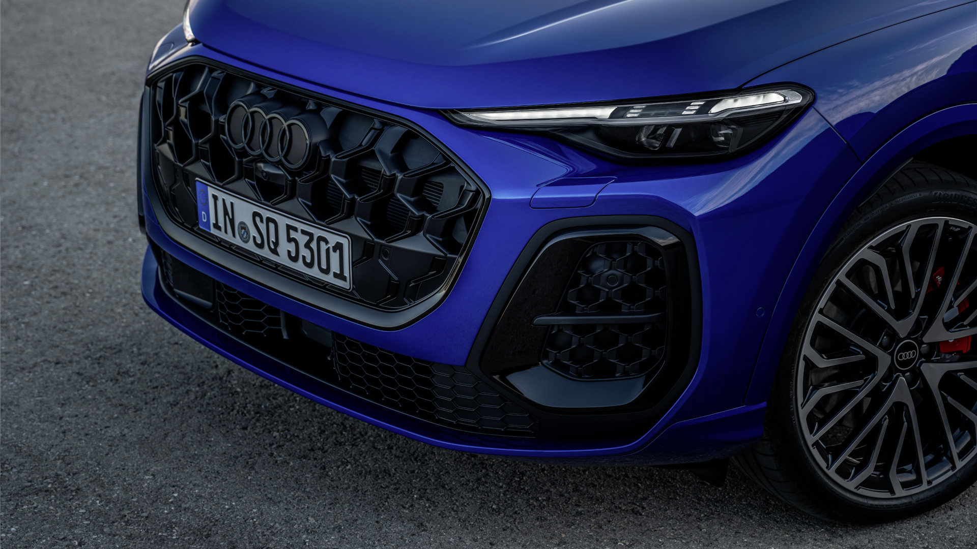 Die markanten Änderungen der SQ5-Variante gegenüber dem regulären Q5 sind unverkennbar – sowohl optisch als auch technisch. An der Front sticht das breite, flache Kühlergrill-Design hervor, flankiert von vertikal betonten Aircurtains, die den dynamischen Charakter des SQ5 unterstreichen.