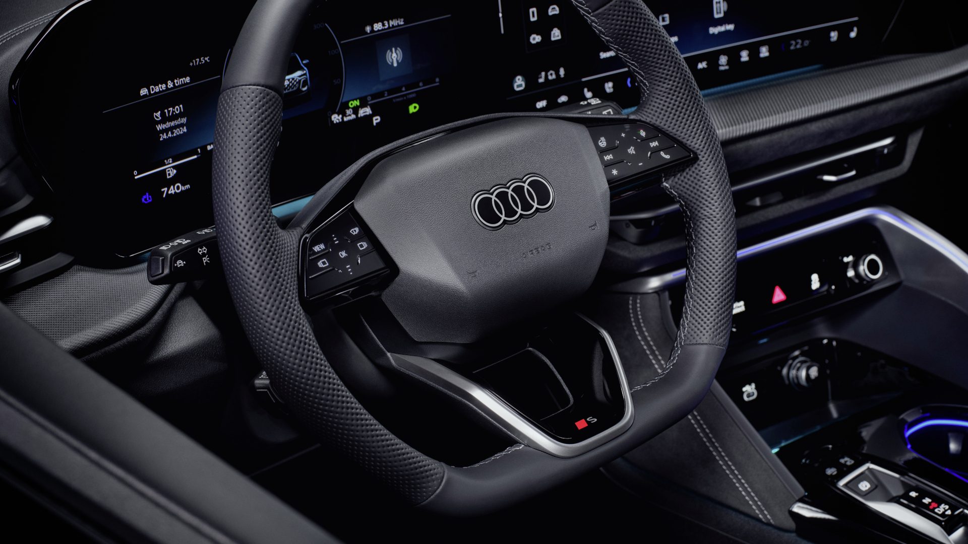 Das Cockpit wird von der „Digital Stage“ dominiert – einem großen, leicht zum Fahrenden geneigten Panorama-Display, das sich aus einem 11,9-Zoll-Kombiinstrument und einem 14,5-Zoll-Infotainment-Touchscreen zusammensetzt. Die Verarbeitungsqualität ist nicht überall auf Premium-Niveau - an den Türgriffen innen beispielsweise merkt man, dass auch die Ingolstädter sparen müssen.