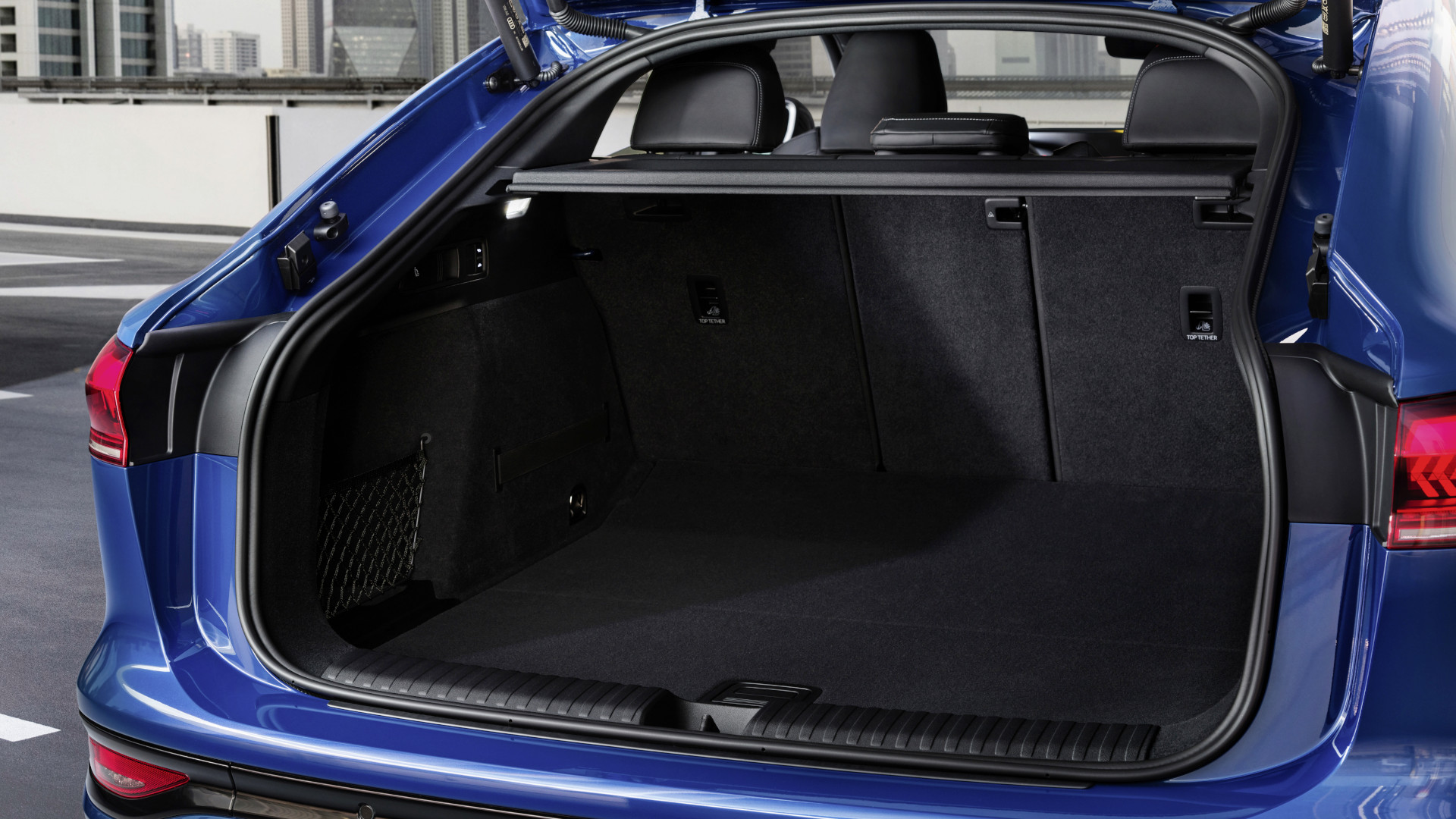 Und der Kofferraum unter dem sich absenkenden Dach? Der SQ6 Sportback endet mit mehr Platz, als man denkt. Unter der Fronthaube findet sich ein mit 64 Liter Volumen großer Frunk für die Ladekabel, die dadurch nicht den Laderaum blockieren. Das sich hinten abduckende Dach kostet gerade mal 15 Liter Kofferraumvolumen gegenüber dem SUV.