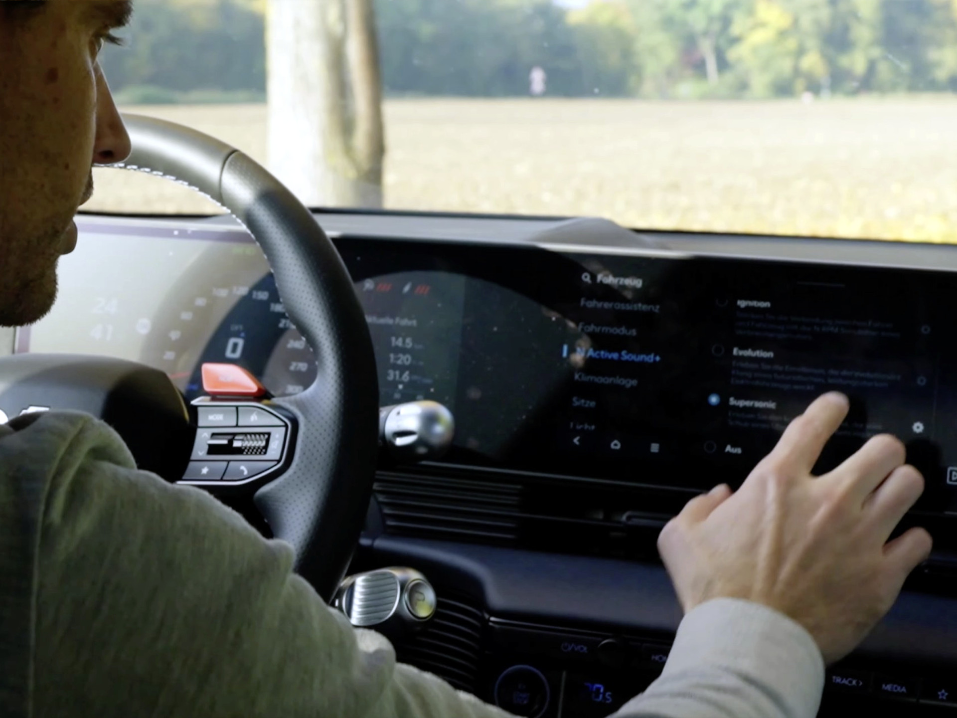 Der Wagen spielt Verbrennergeräusche über die Lautsprecher, simuliert Schaltvorgänge, knallt Fake-Auspuffgeräusche und lässt den Innenraum wie ein kaputtes Radio vibrieren. Im „Ignition“-Modus klingt er wie ein Golf GTI auf Speed, im „Evolution“-Modus wie ein Staubsauger, der gerade mit einem Synthesizer verschmolzen wurde, und im „Supersonic“-Modus wie ein Düsenjet, der nicht ganz starten will.