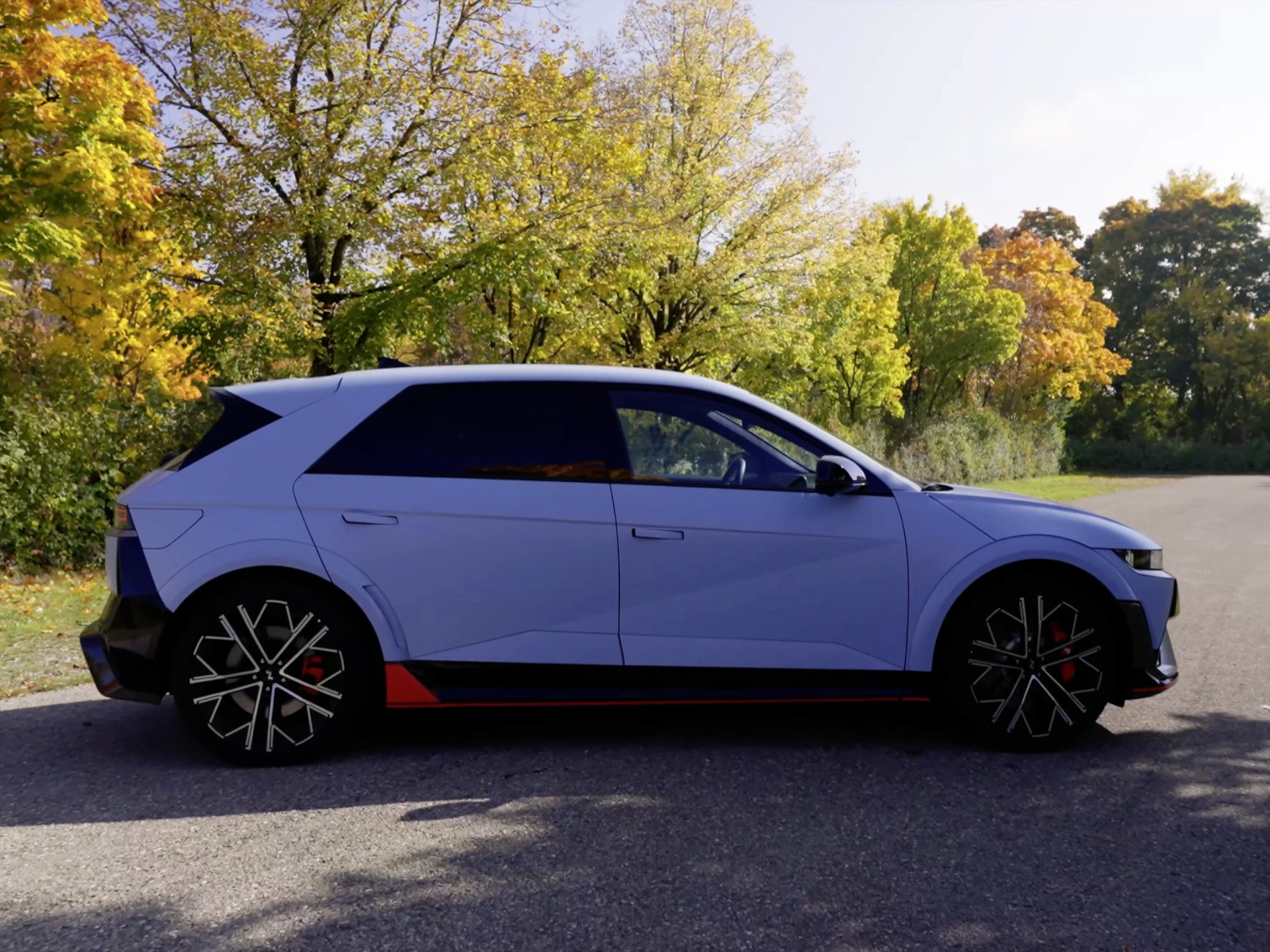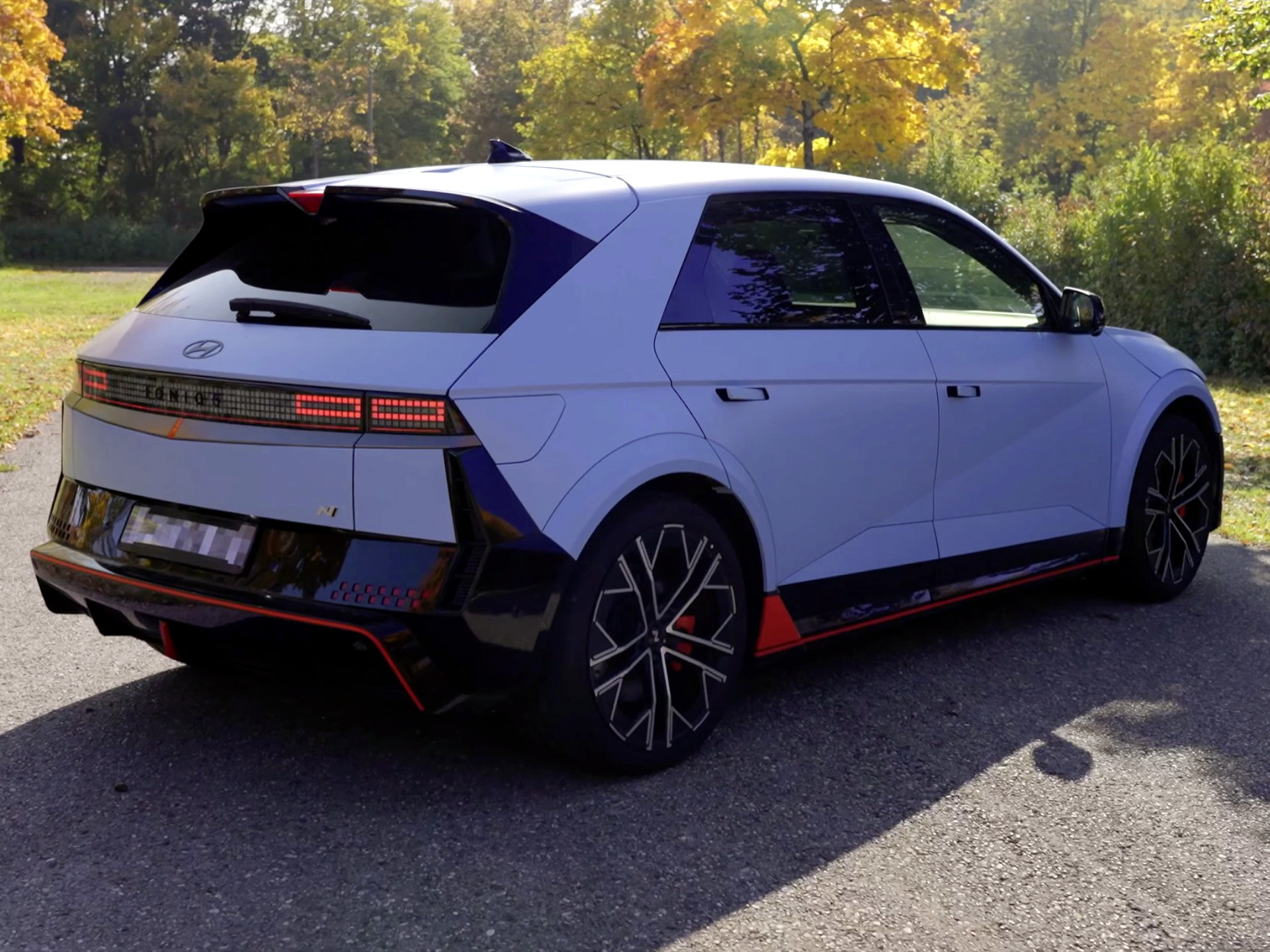 Und ja, wir finden: Er sieht richtig gut aus. Gerade weil er nicht versucht, sich in die Masse der glatten, runden E-Autos einzureihen. Der N wirkt kantig, böse und gleichzeitig irgendwie futuristisch – wie ein DeLorean, der auf Steroiden zum Trackday fährt.