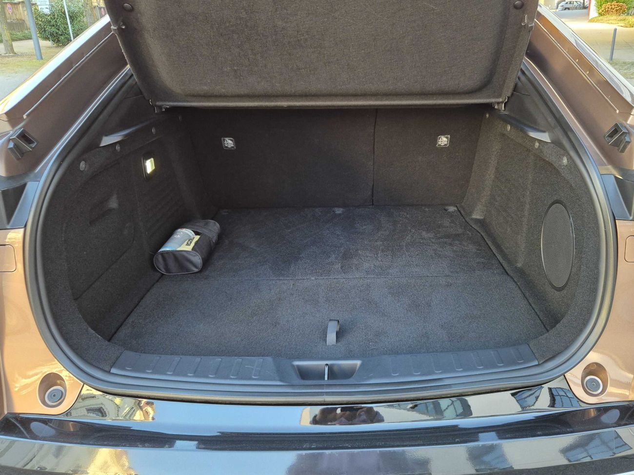 Mit 336 Litern Kofferraumvolumen ist der Mazda6e eher unterdurchschnittlich unterwegs. Im Alltag reicht das zwar für Einkäufe oder Wochenendtrips, doch im Vergleich zu Konkurrenten wie dem VW ID.7 verliert Mazda deutlich. Bei umgeklappten Rücksitzen stehen bis zu 1.074 Liter zur Verfügung. Immerhin wartet unter der Fronthaube ein Frunk mit 72 Litern Stauvolumen und praktischer, herausnehmbarer Tasche. Im Fond überzeugt die Beinfreiheit, während große Mitfahrende wegen der abfallenden Dachlinie Kontakt mit der Decke aufnehmen können.