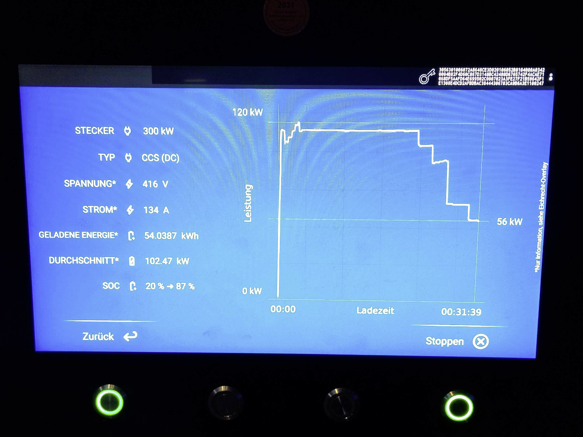 Und noch nerviger: Die Ladeleistung ist nicht stabil. Je nach Temperatur und State of Charge habe ich teilweise auch nur rund 120 kW gesehen. Das ist nicht dramatisch schlecht – aber es ist eben weit weg von „zack, 15 Minuten und weiter“.
