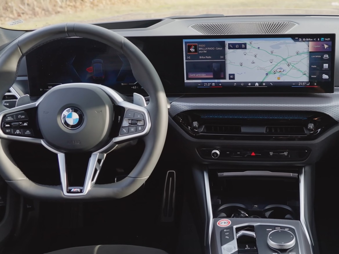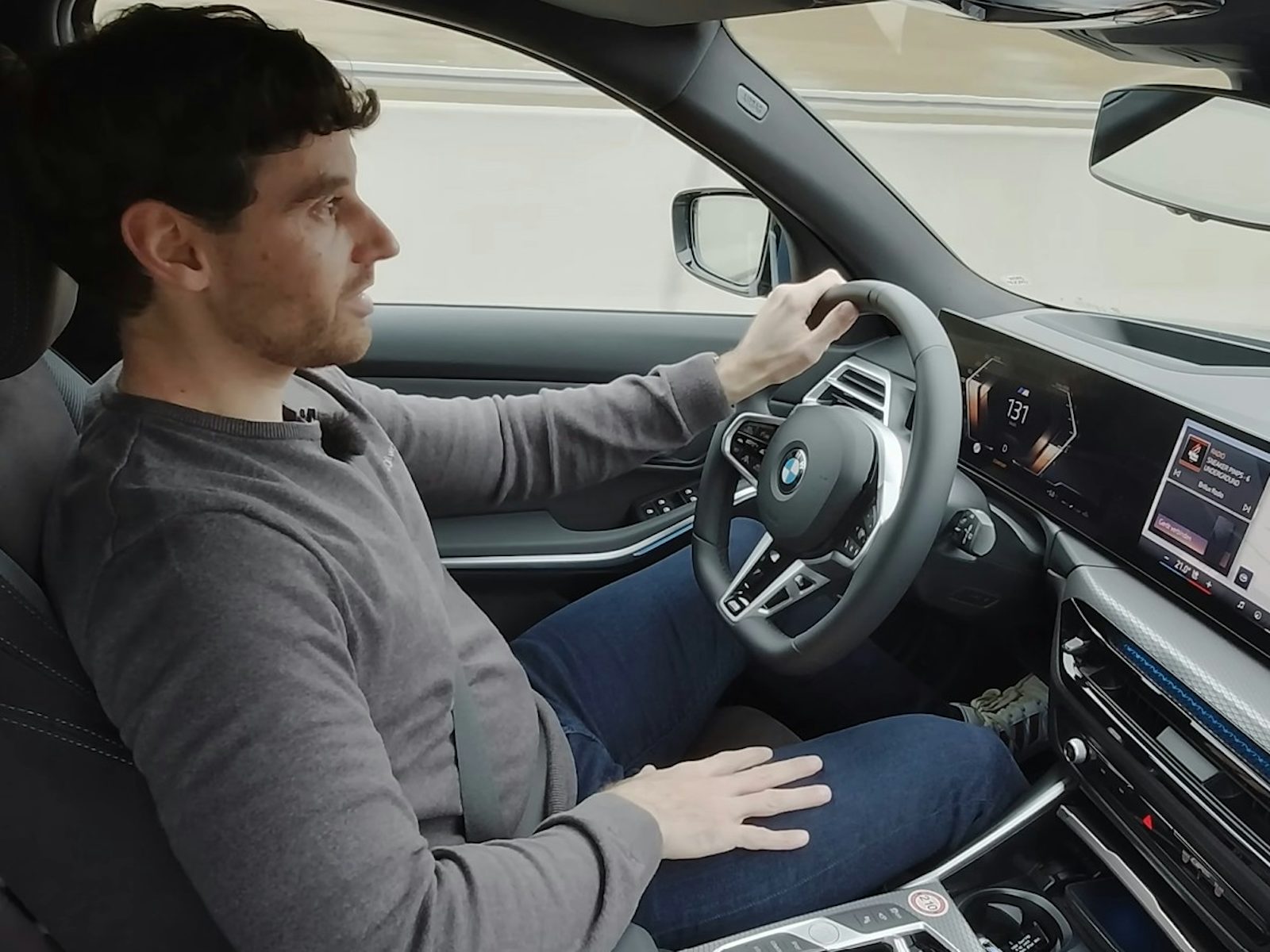 Der BMW ist innen vor allem praktikabel: iDrive-Drehdrücksteller, echte Knöpfe und am Lenkrad die Drive-Modi da, wo man sie erwartet. Das fühlt sich leichter, intuitiver und einfach sympathischer an. Obwohl der aktuelle 3er bereits seit 2019 auf dem Markt ist, wirkt das Interieur dank iDrive und guter Bedienlogik immer noch angenehm frisch.