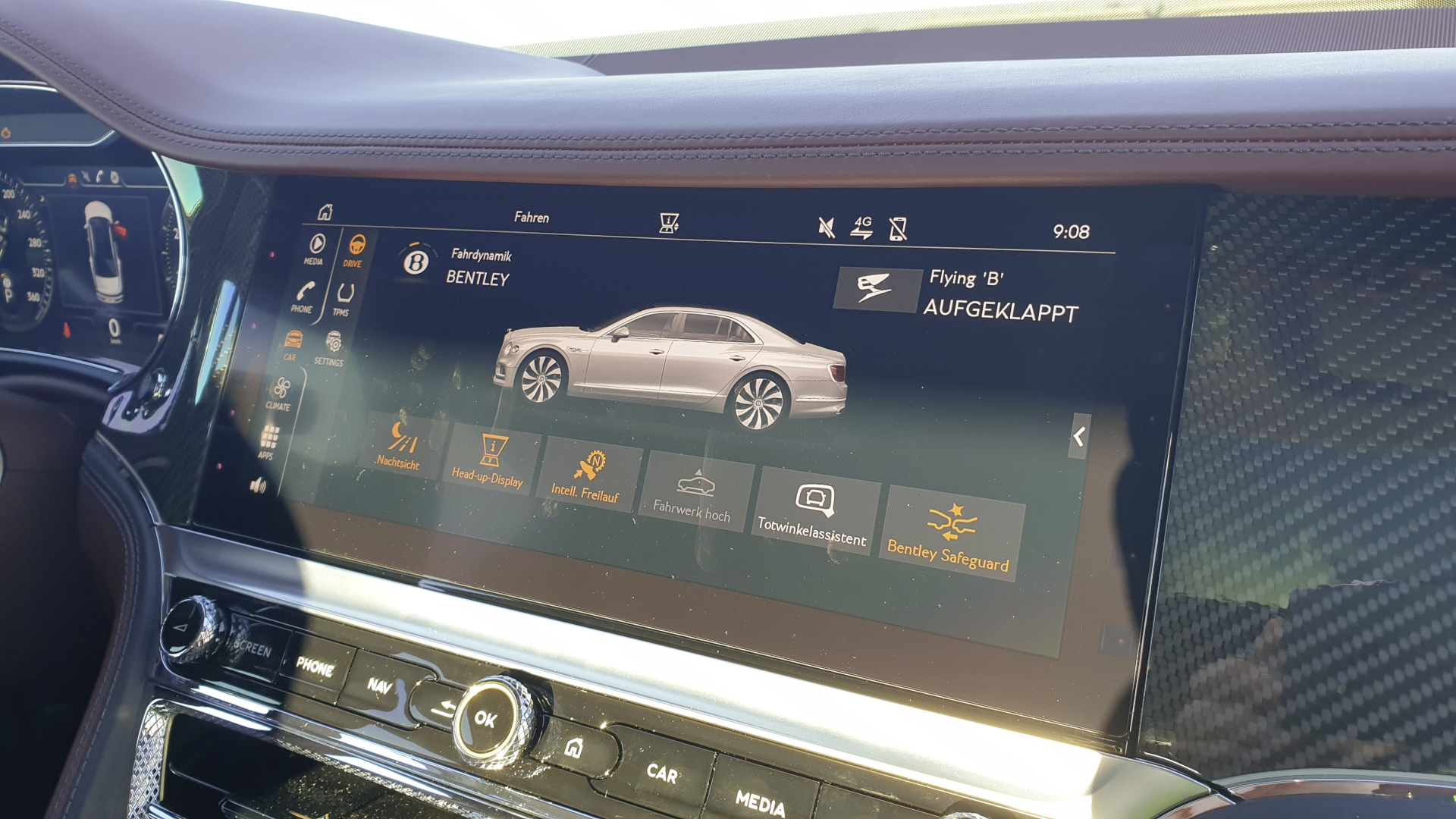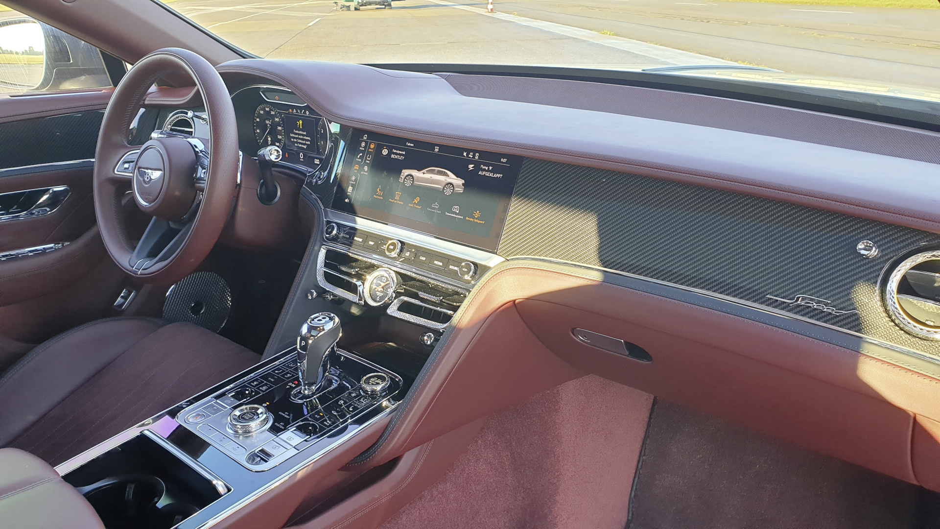 Wer angesichts des hohen Preises jetzt ein besonders digitales Cockpit erwartet, der wird enttäuscht. Es würde wohl auch nicht ganz zu einer britischen Luxuslimousine à la Bentley passen. Das Kombiinstrument hinter dem Lenkrad gibt sich digital - und in der Mitte des Cockpits wartet ein Infotainment-Touchscreen, jedoch nur in der weit verbreiteten Größe von 12,3 Zoll.