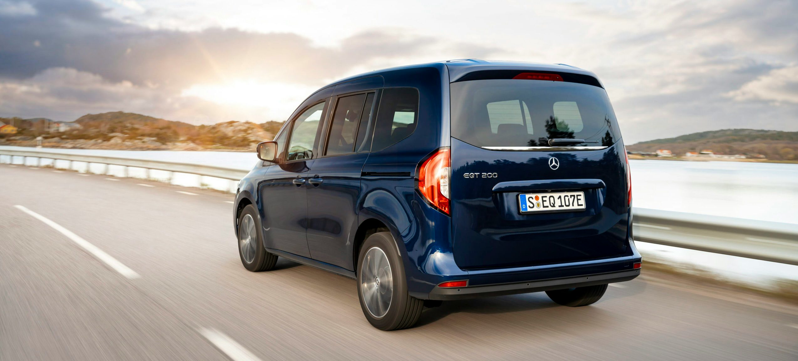 Zum Marktstart wird der EQT als Version mit einem Elektromotor mit 122 PS Leistung und 245 Nm Drehmoment angeboten. Die Batterie wurde chrashgeschützt im Unterboden verbaut und hat eine Kapazität von 45 kWh. Mit 22 kW kann der EQT an einer AC-Ladestation geladen werden. Wenn es schneller gehen soll, dann sind an einer DC-Schnellladestation maximal 80 kW möglich. In 38 Minuten ist der EQT dann von 10 auf 80 Prozent geladen.