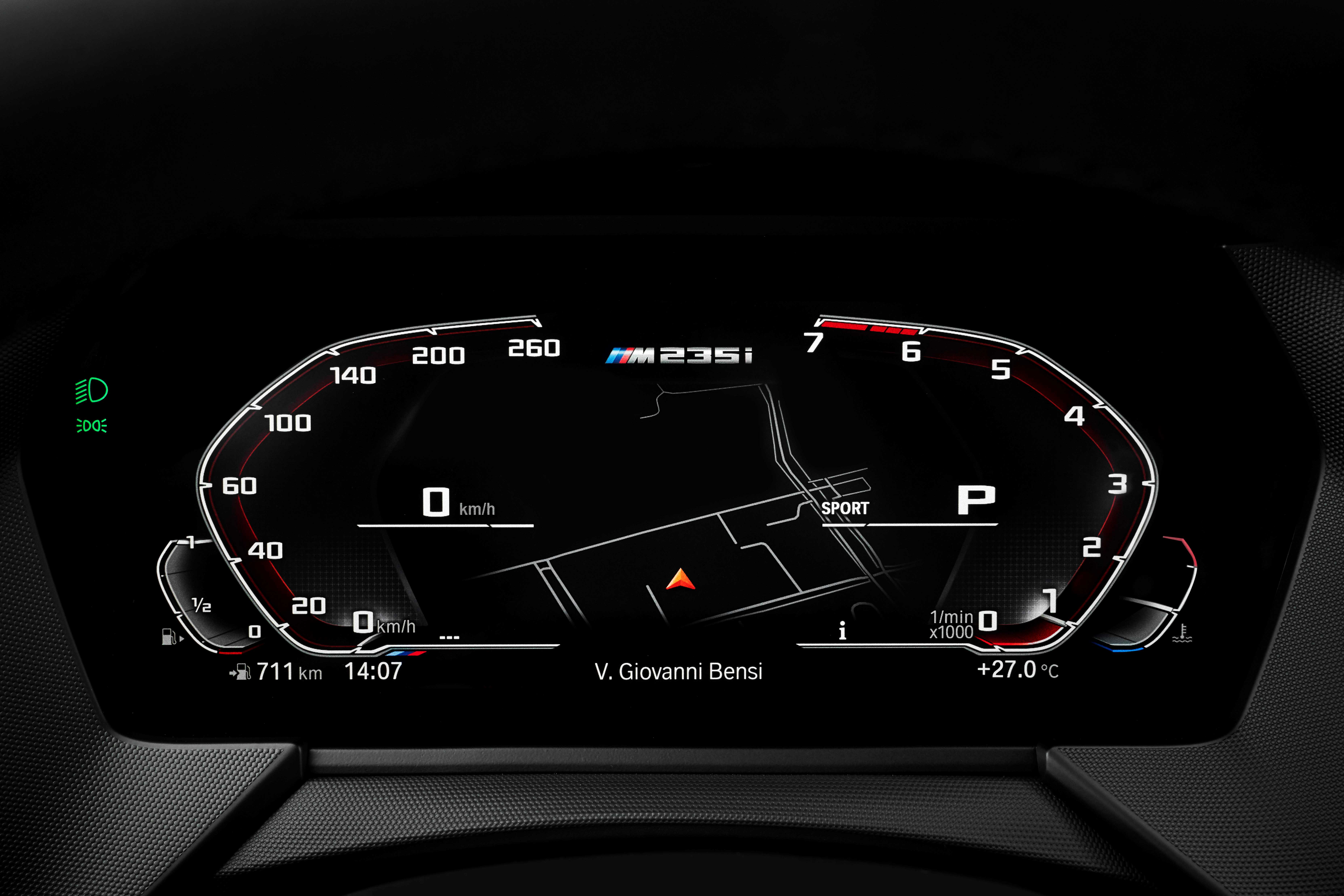 Auf Wunsch erhält man das 2er Gran Coupé auch mit Digitalinstrumenten. Und auch mit dem Infotainment ist das erste Limousinen-Coupé der 2er-Reihe voll auf Höhe der Zeit mit seinem großen Touchscreen, dem optionalen Head-up-Display, der flotten Smartphone-Einbindung über Apple CarPlay oder Android Auto (ab Sommer 2020) und Features wie dem Sprachassistenten und der Gestensteuerung.