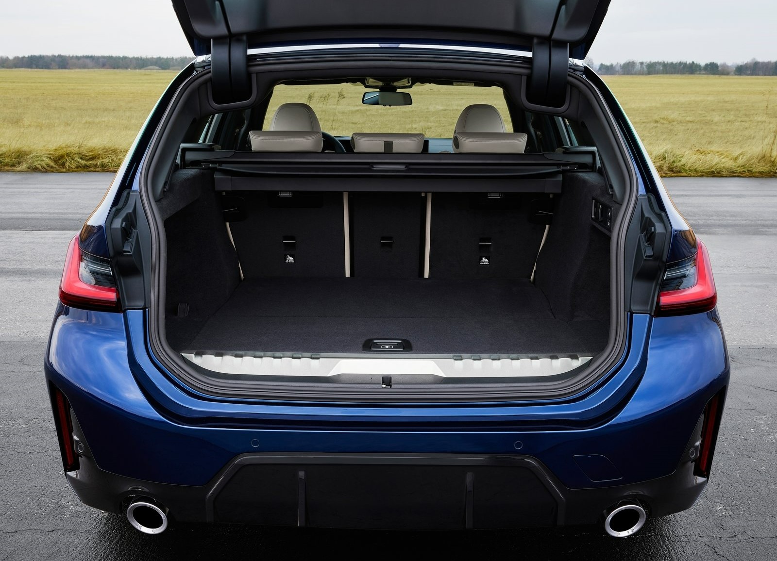 Der BMW 3er Touring ist ein Kombi, der für seine praktische und geräumige Karosserie bekannt ist. Mit einem Kofferraumvolumen von 500 Litern bietet er viel Platz für Gepäck. Wenn die Rücksitze umgeklappt werden, erhöht sich das Volumen auf bis zu 1.510 Liter.