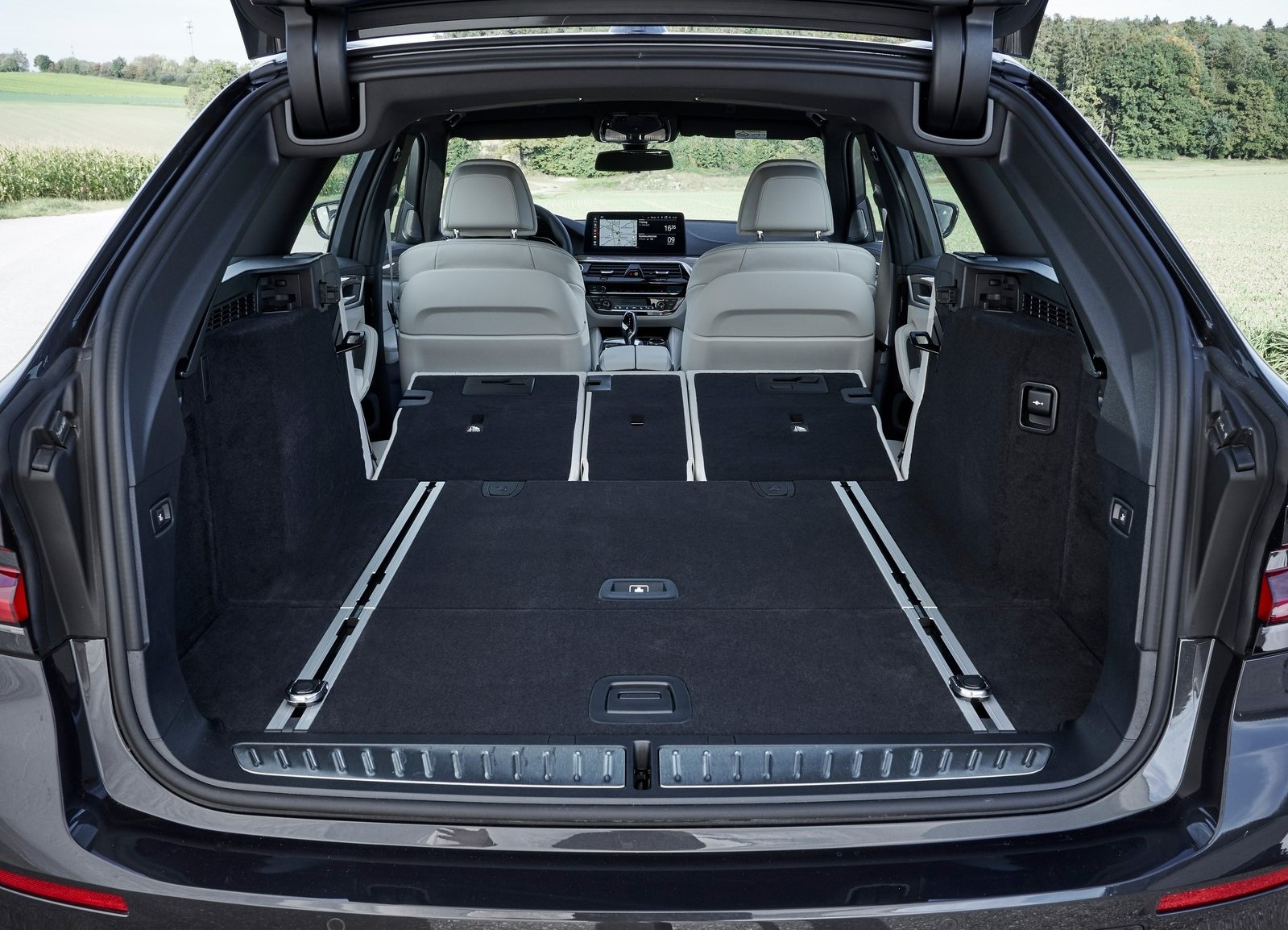 Die Ladung ist im 5er Touring so umfassend gesichert wie nie zuvor. Wenn extra dafür bezahlt wird, unterstützt eine Vielzahl von Assistenten den Fahrer. Dazu zählen der Spurhalteassistent, der Querverkehrs- und Vorfahrtswarner sowie eine aktive Geschwindigkeitsregelung.