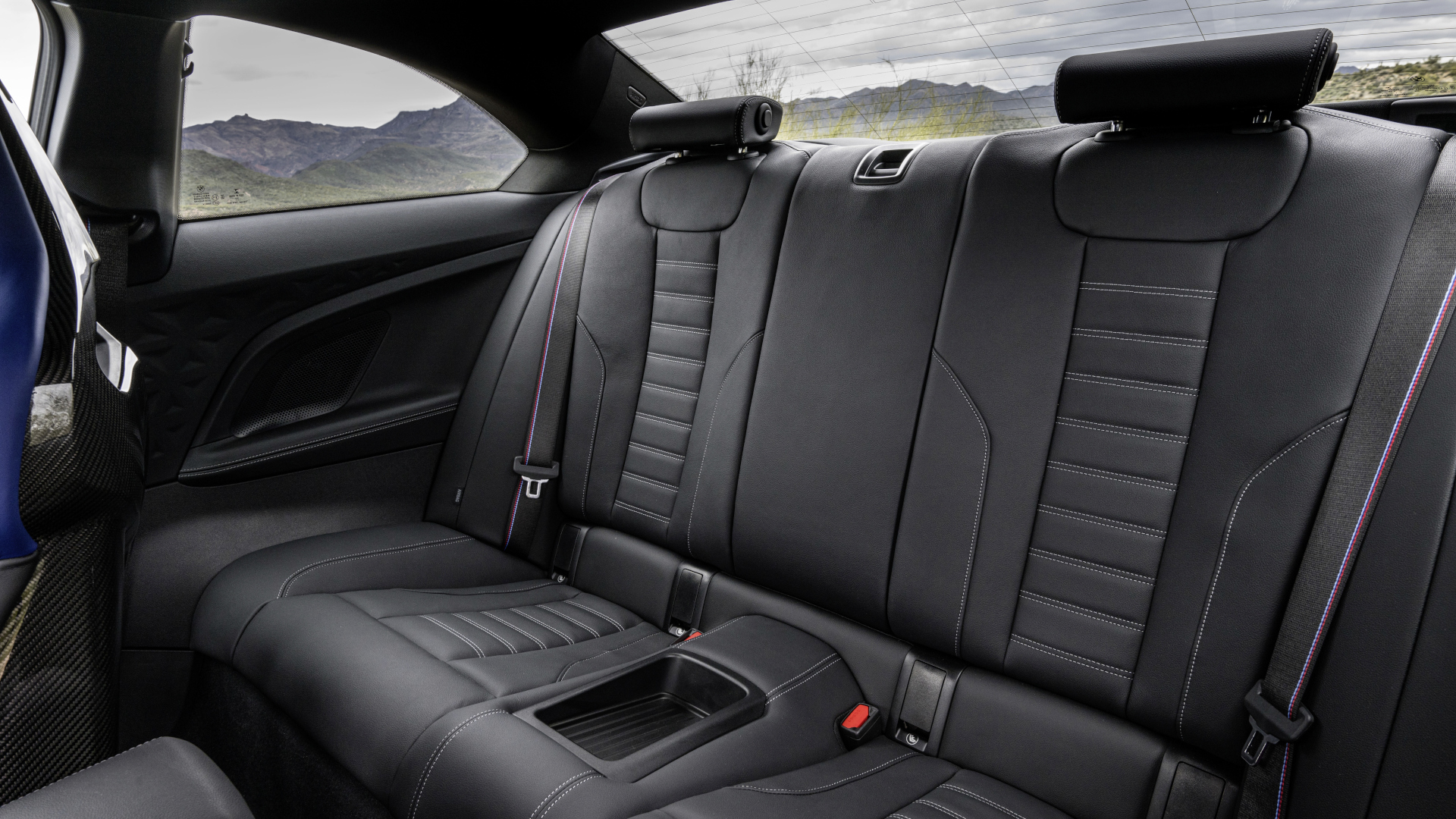 Auf den zwei Plätzen im Fond, die als Einzelsitzplätze ausgeformt sind, geht es eng zu. Nicht in der Breite, weil auf der Sitzbank mit 1.399 Millimeter Breite noch etwas mehr Schulterfreiheit geboten wird als im M4 mit 1.375 Millimeter, aber um die Knie und über dem Kopf. Hier steht im BMW M2 nochmals zwei Zentimeter weniger Kopffreiheit zur Verfügung mit 890 statt 909 Millimeter.