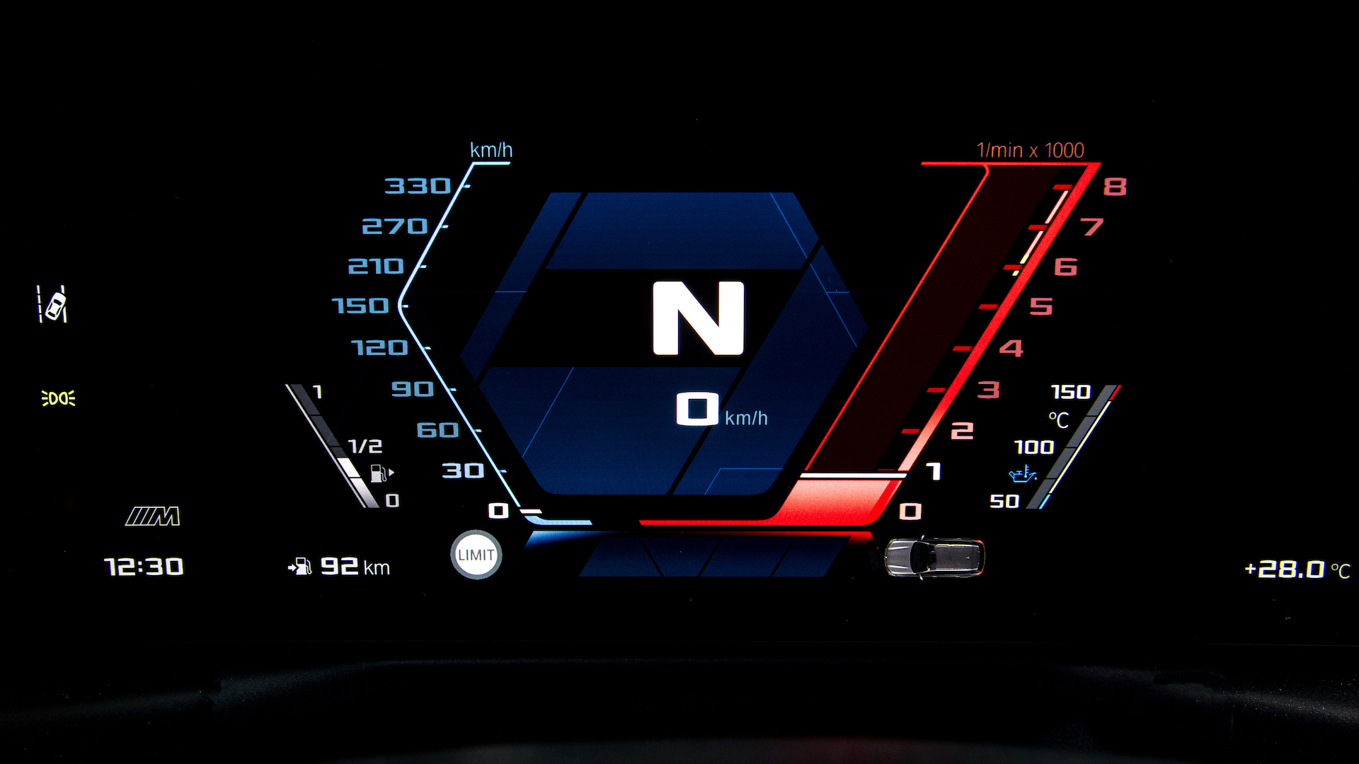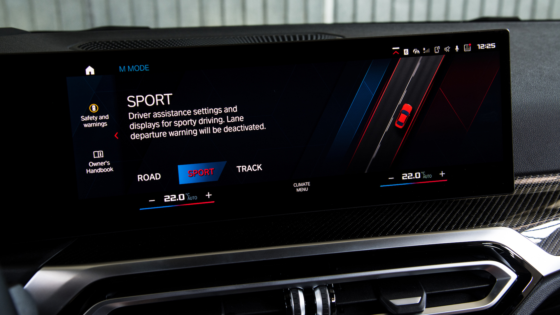 Über den Zentralbildschirm im Innenraum wird das Infotainment und das cloud-basierte Navigationssystem gesteuert, das den Weg dynamisch in Echzeit berechnet. Auf dem Screen finden sich zusätzlich M spezifische Widgets zum Fahrzeug-Setup oder Reifenzustand.