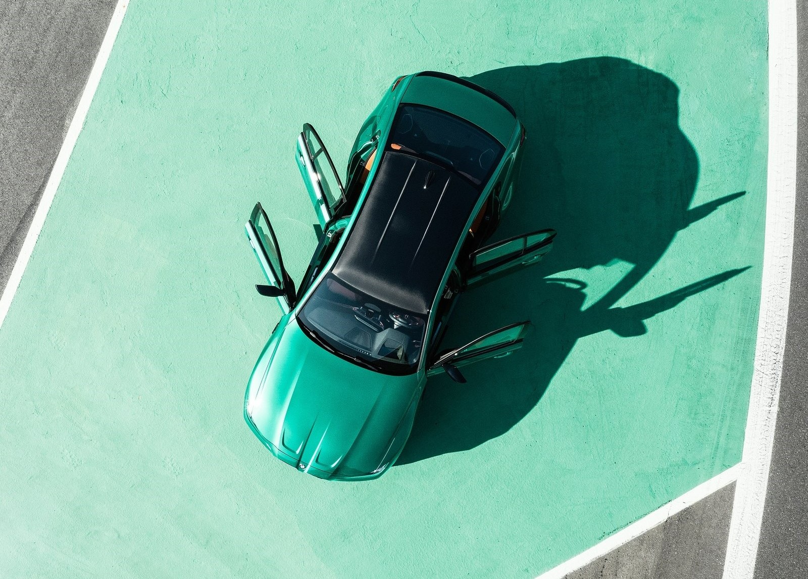 Die großen Nieren werden nur vom Nummernschild durchbrochen, nehmen sonst die gesamte vordere Mitte ein. Hinzu kommen kantige Applikationen auf den Seiten und ein markanter Heckspoiler.