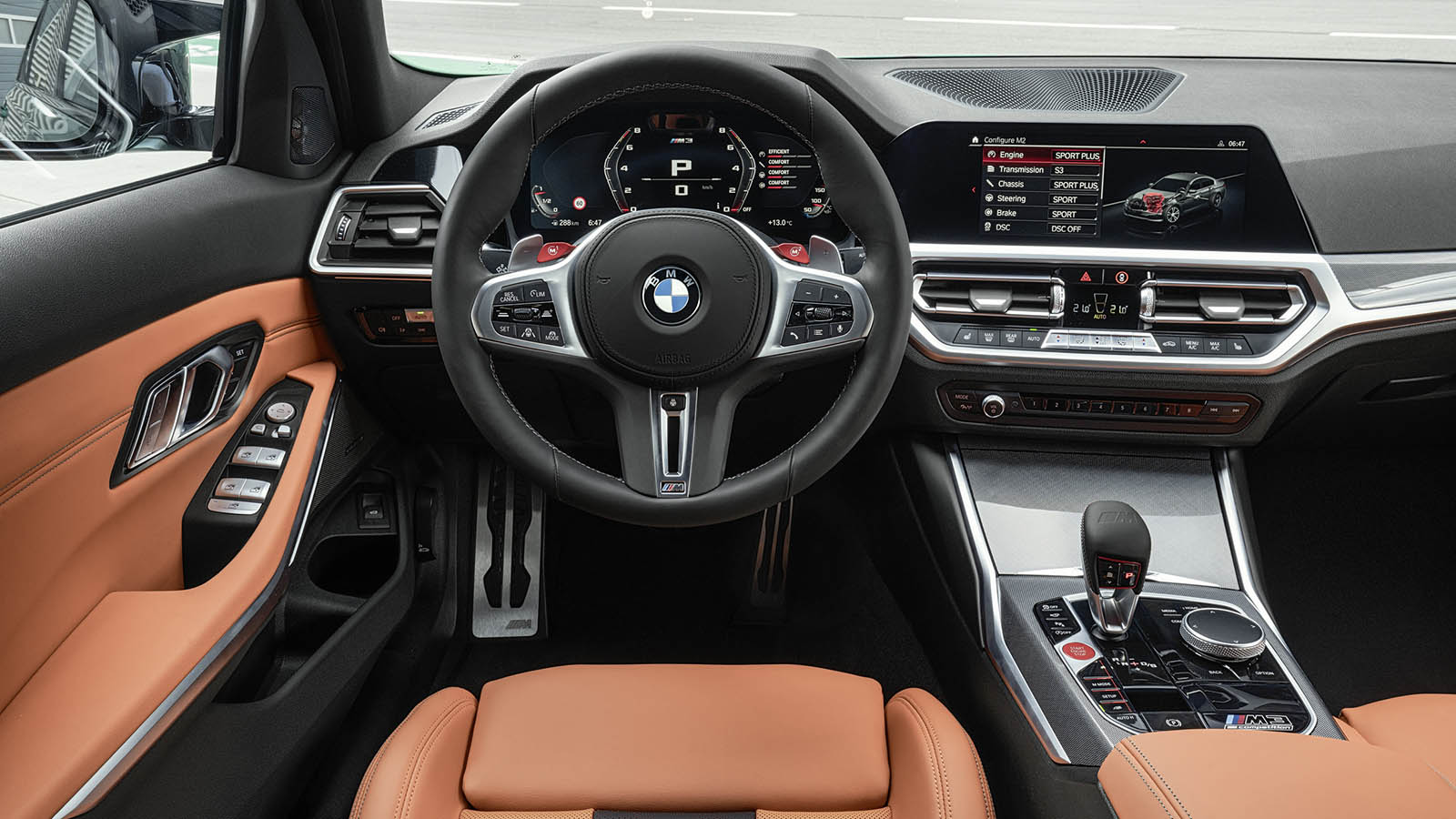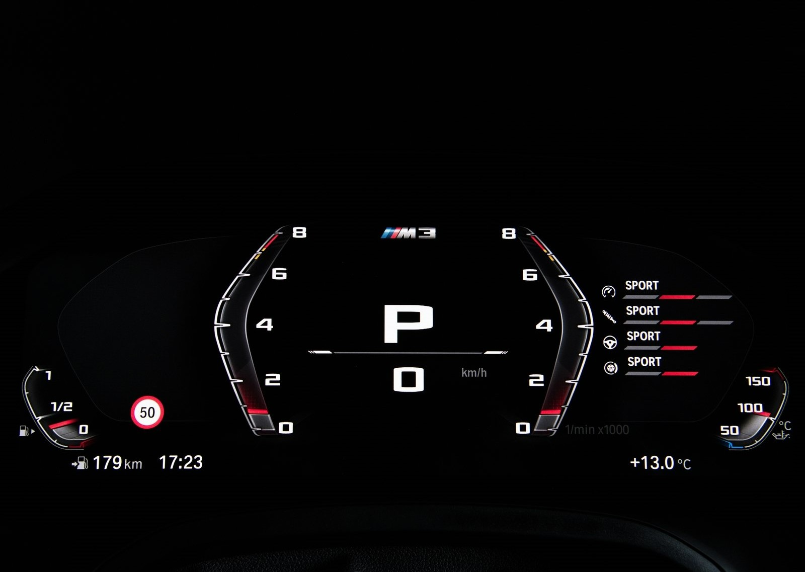 Der neue M3 kommt mit 18-Zoll Leichtmetallrädern, dem BMW Live Cockpit Professional, M Sportfahrwerk und einer Park Distance Control.