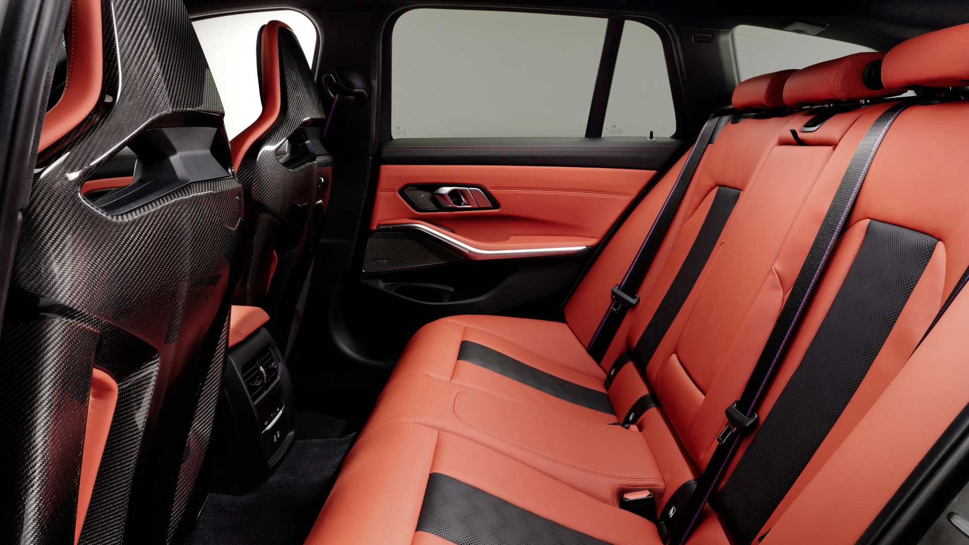Die optionalen Schalensitze machen den M3 Touring durch Carbonfaserverstärkten Kunststoff in den Sitzflächen und Lehnen und durch Durchbrüche im Sitz um 9,6 kg leichter. Die Gewichtsreduzierung ist mit 4.500 Euro jedoch sehr teuer erkauft.