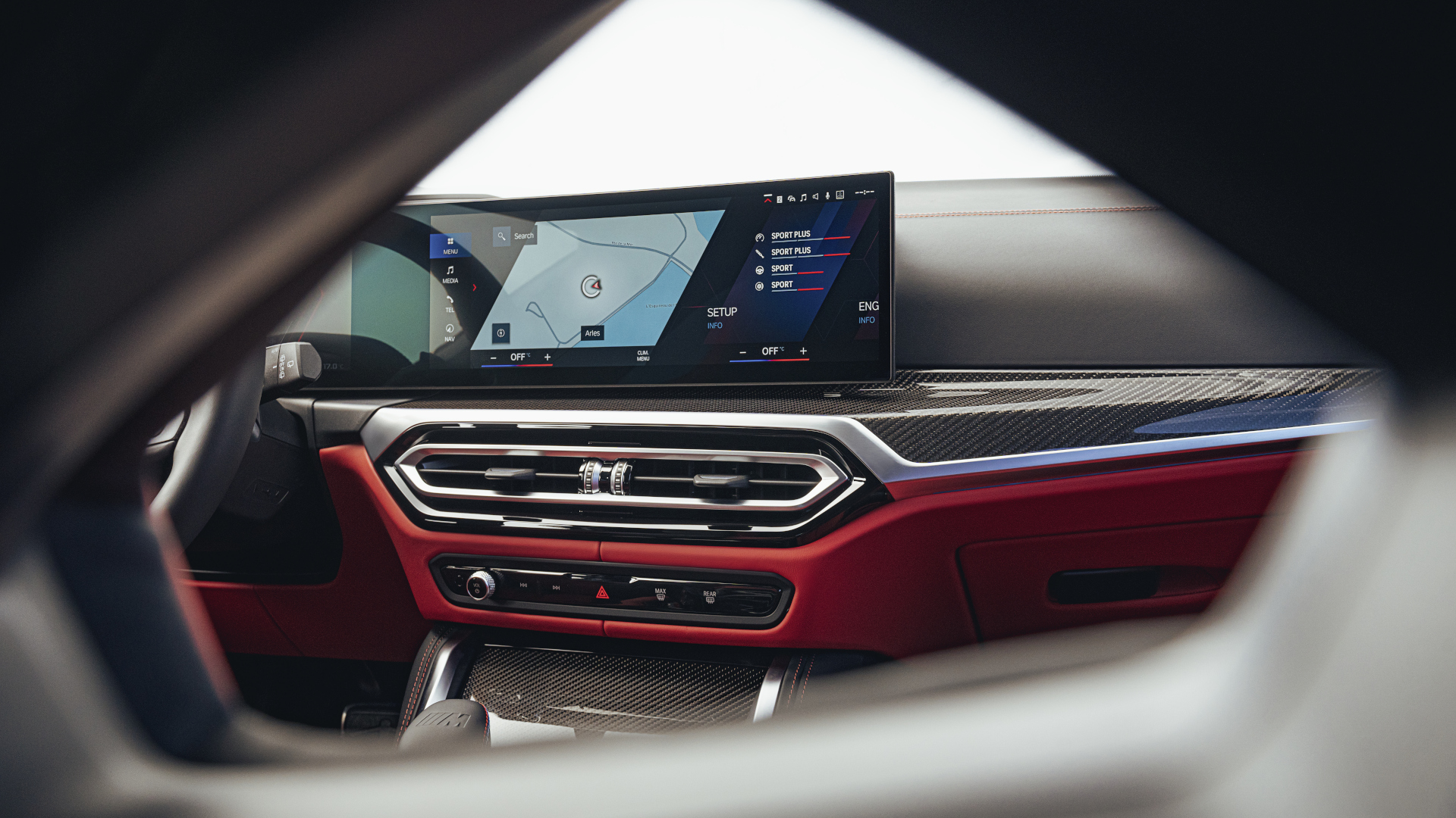 Über den zentral positionierten Touchscreen werden das Infotainment, die Fahrzeugeinstellungen und im M3 Touring M-spezifische Widgets gesteuert. Die Bedienung erfordert etwas mehr Konzentration als in einem klassischen Cockpit, wie etwa dem des Audi RS4 Avant, denn viele Tasten und Regler im Interieur sind mit dem Digitalcockpit im Innenraum verschwunden.
