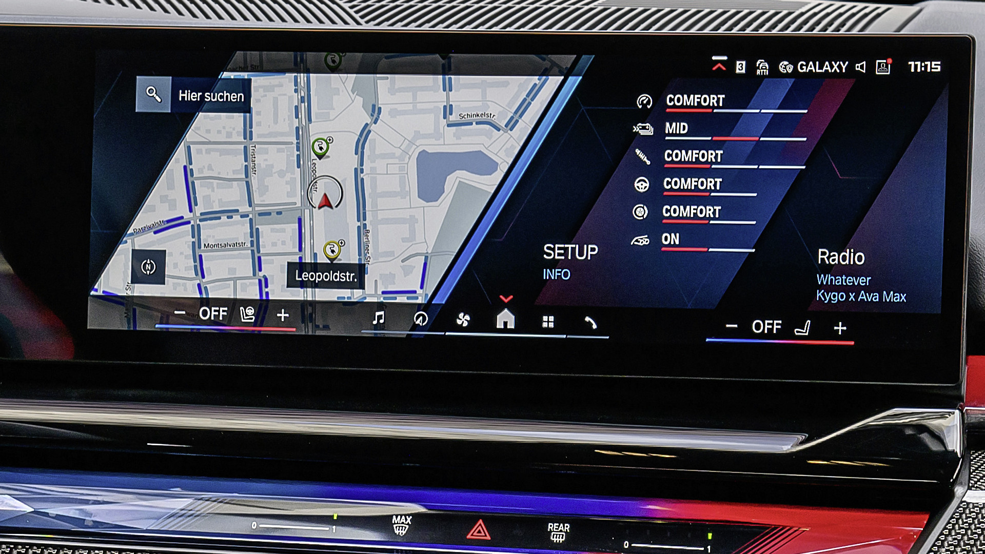 Im Zentrum des Cockpits steht das BMW Live Cockpit Professional, welches ein 12,3 Zoll großes digitales Display mit einem Instrumentencluster mit einem 14,9-Zoll Infotainment-Bildschirm kombiniert. Ergänzt wird das Setup durch das BMW Head-Up Display, das wichtige Fahrinformationen direkt auf die Windschutzscheibe projiziert, sodass die Konzentration auf der Straße bleibt.