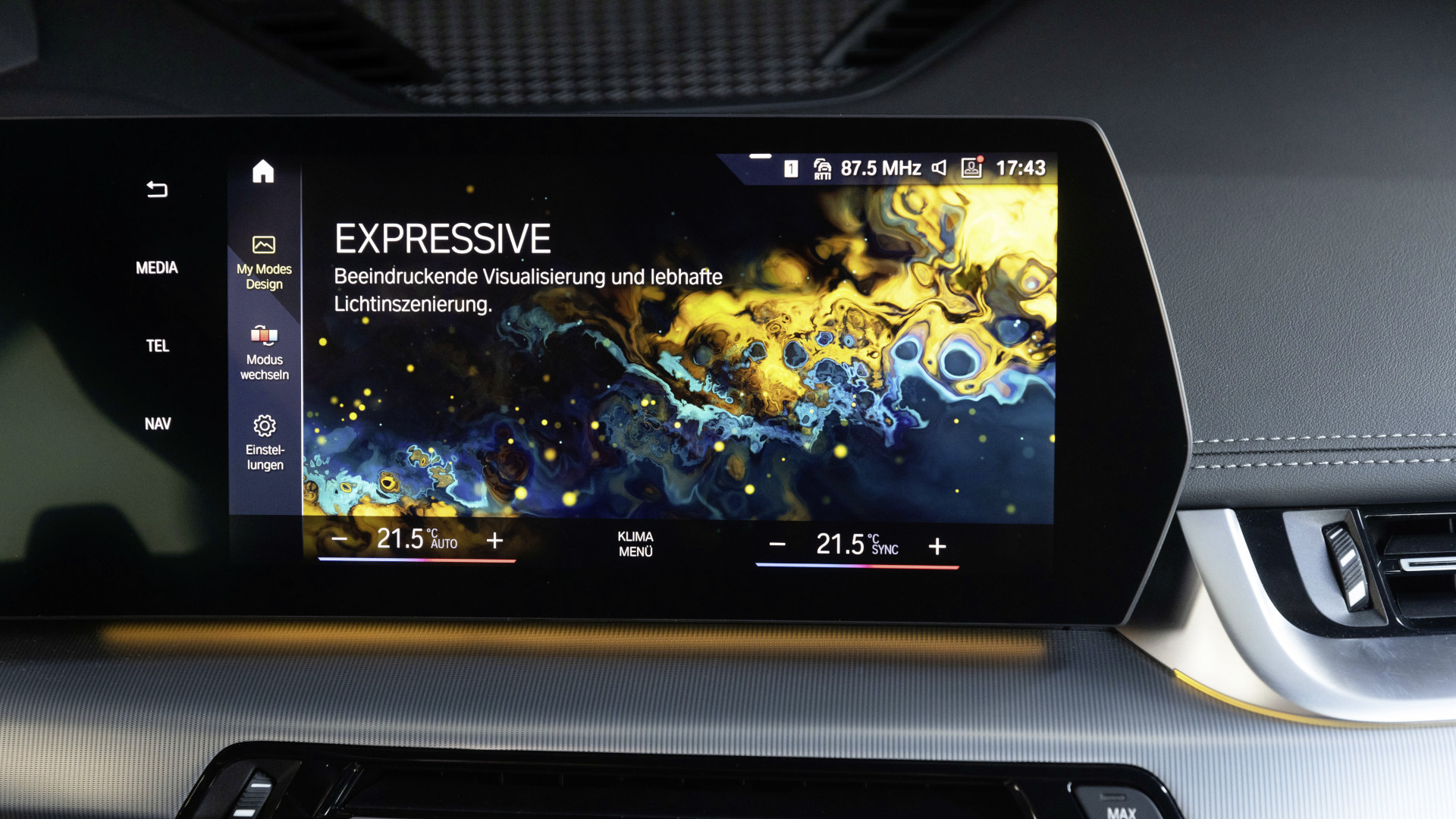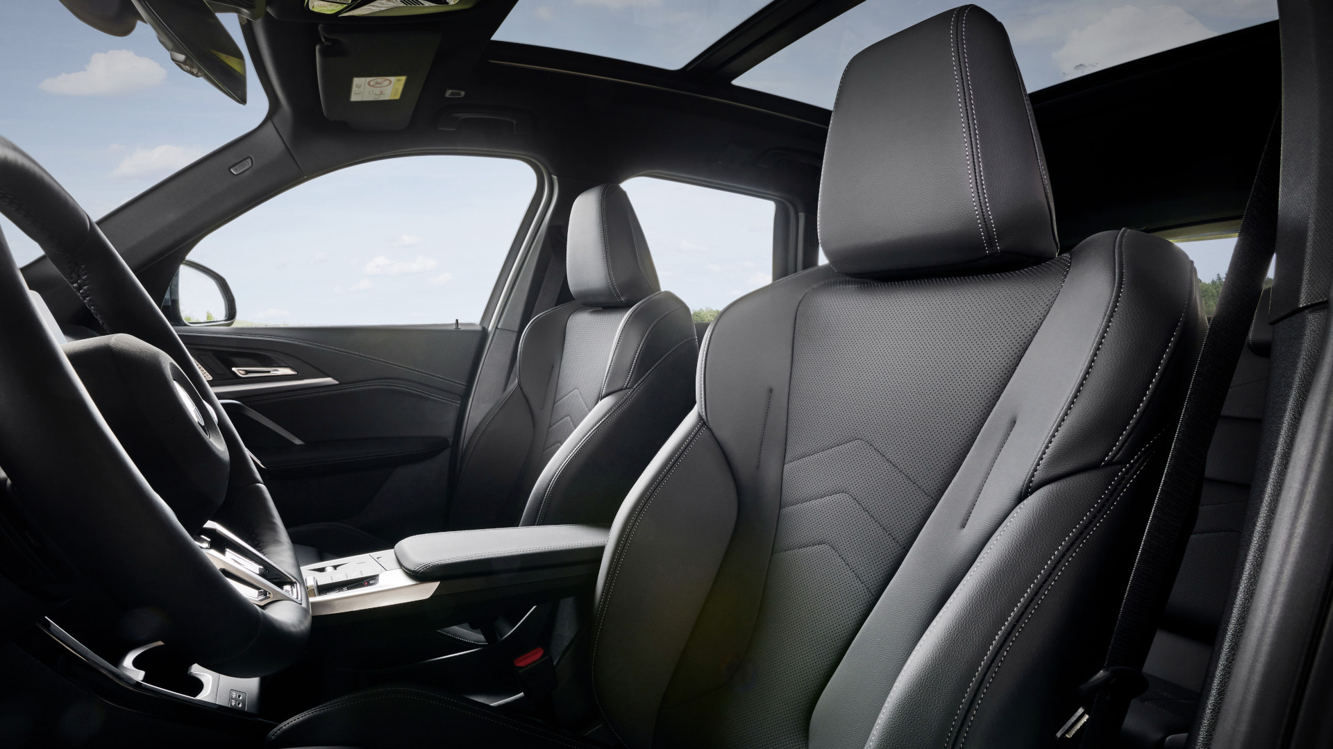 Im Innenraum bekommt man Platz, Komfort und Sportlichkeit. Neu gestaltet wurden die Armaturentafel, die jetzt flach verläuft – und natürlich das Herzstück des Cockpits mit dem Curved Display. Es besteht aus einer Kombination des 10,25 Zoll großen Kombiinstrumentes und dem 10,7 Zoll großen zentralen Touchscreen. Außerdem gibt es im neuen X1 eine Armauflage, die zu schweben scheint und das Bedienfeld und eine indirekt beleuchtete Smartphone-Ablage enthält.