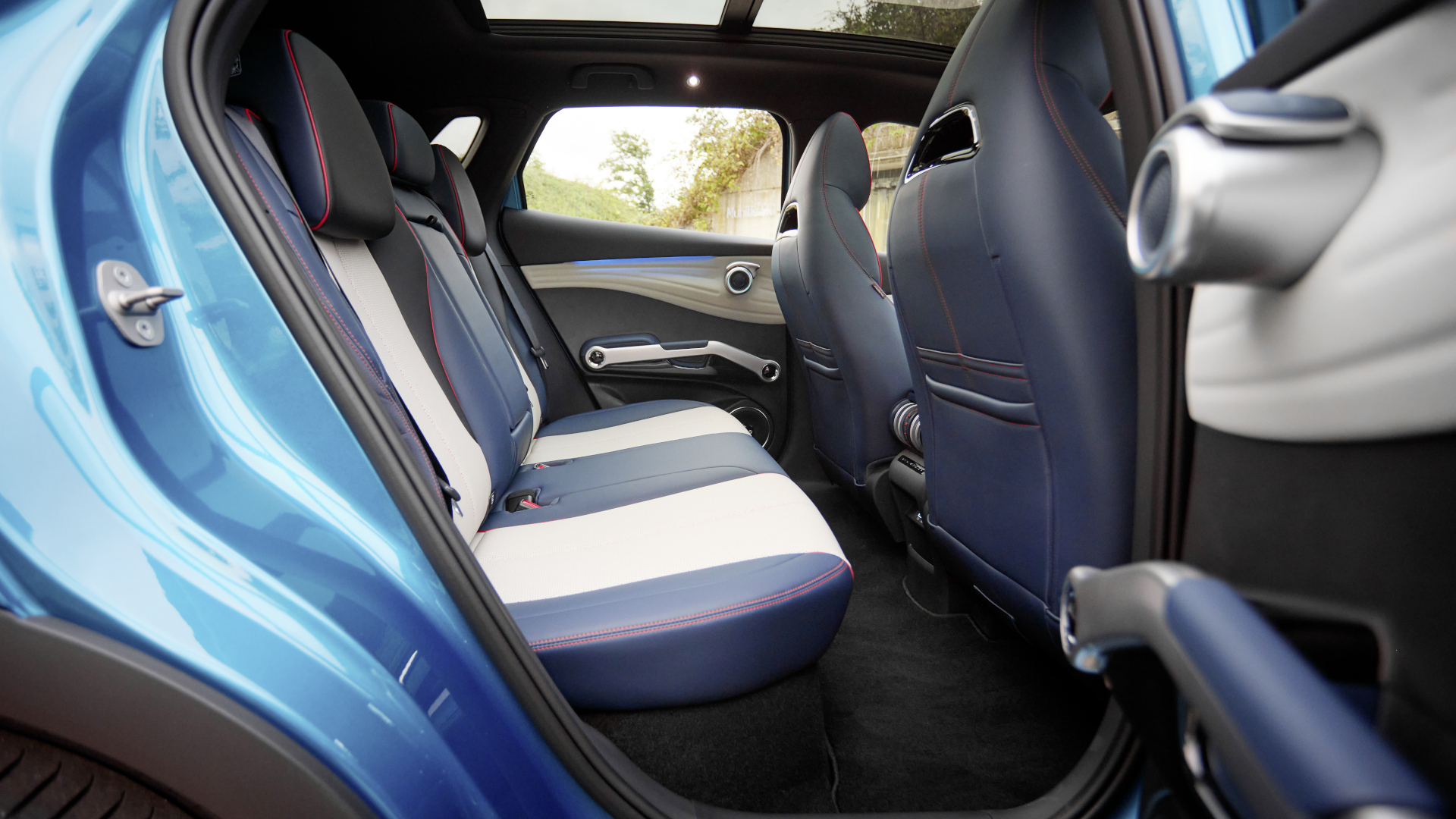 Im Fond fällt das Fazit gemischt aus. Es gibt viel Platz für Beine, Knie und Füße, wobei auch der flache Boden hinten hilft, wenn man versucht, jemanden auf den mittleren Rücksitz zu quetschen. Die Kopffreiheit ist allerdings etwas zu gering bemessen, vor allem mit dem serienmäßigen Panorama-Glasdach.