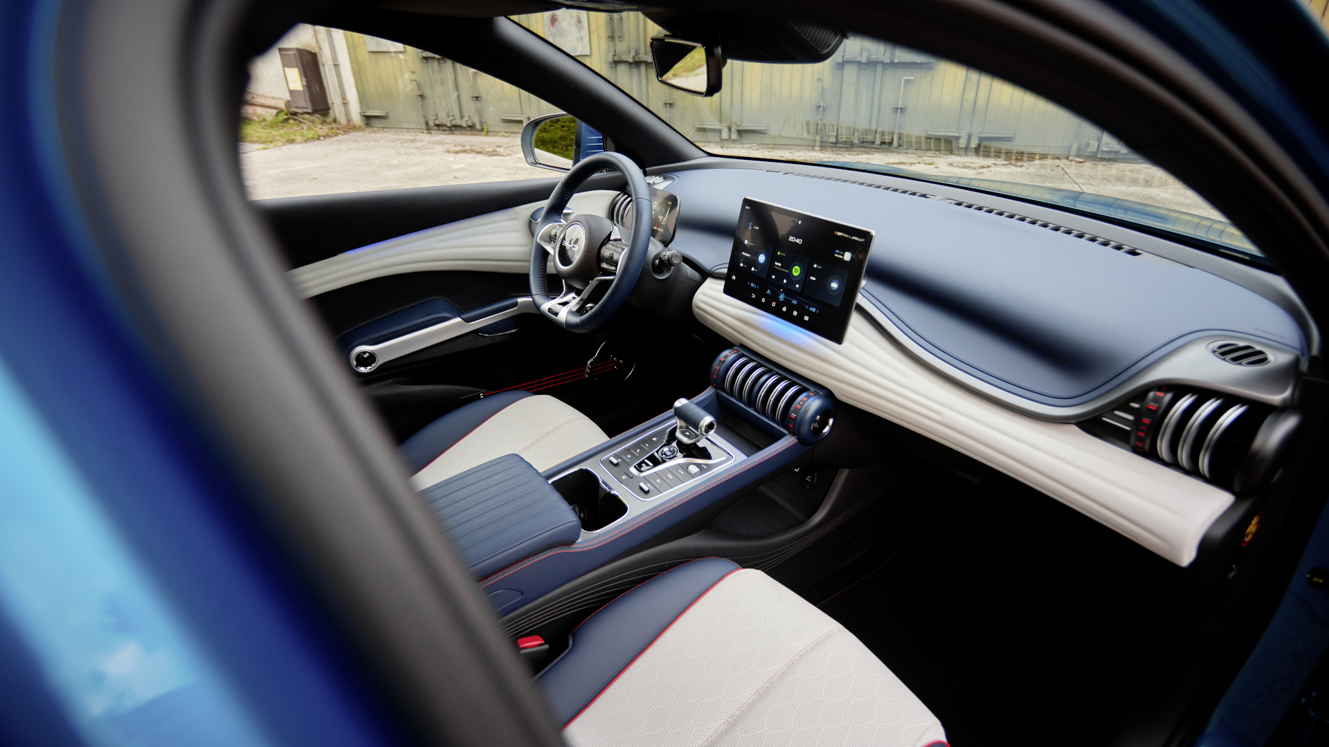 Ein 12,8-Zoll-Infotainmentsystem ist serienmäßig, bei den besser ausgestatteten Modellen wird ein 15,6-Zoll-Bildschirm verbaut. Das Display hat einen netten kleinen Trick auf Lager, denn auf Knopfdruck kannst du es von Quer- auf Hochformat drehen. Das birgt zwar einen Mehrwert, dennoch entscheiden sich in der Praxis viele direkt für eine bevorzugte Position und belassen es bei dieser.
