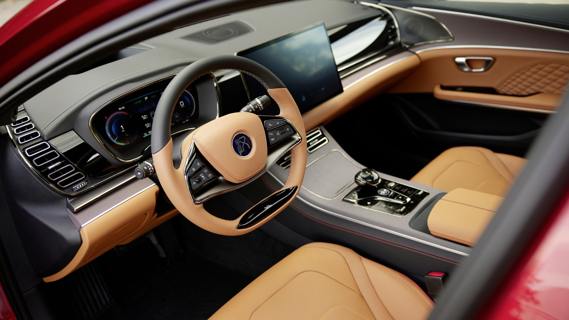 Der Innenraum des BYD ist gefällig gestaltet. Die Materialauswahl sieht hochwertig aus und sorgt für eine angenehme Haptik. Im Executive kommt braunes Leder zum Einsatz und Holzzierelemente veredeln die Limousine. In der Emerald Edition umgarnen Sie namensgebend grüne Velours-Sitze.