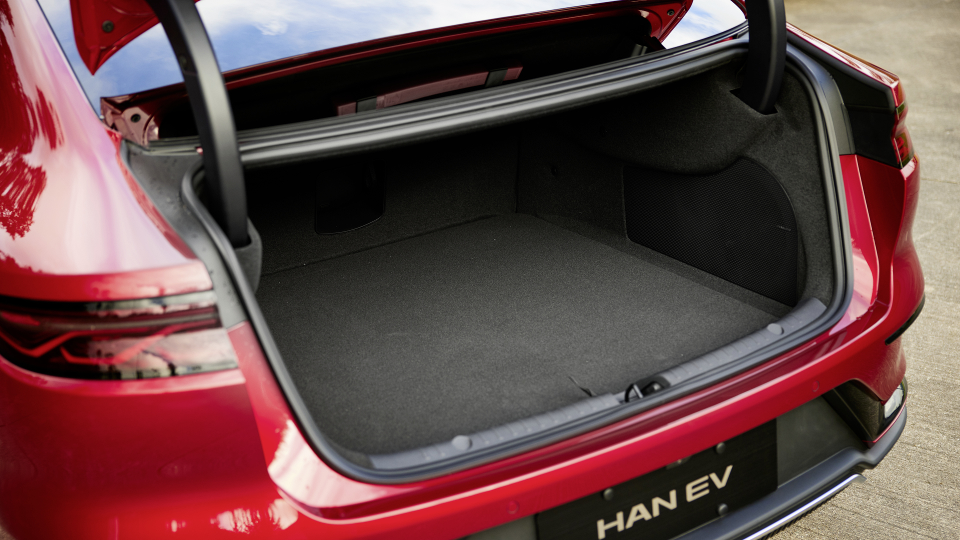 Für ein Auto dieser Größe ist das ohnehin nicht relevant: Platzprobleme für die Batterie gibt es beim Han nicht.