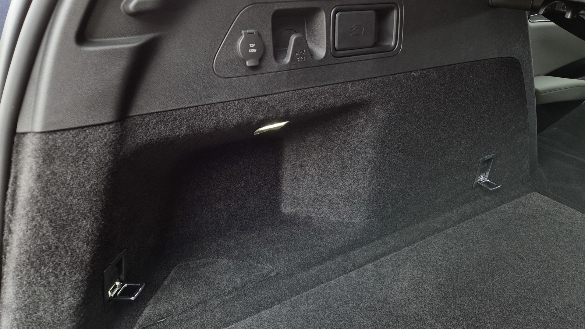 Praktisch hingegen sind die Verzurrösen im Kofferraum, mit denen der Kombi standardmäßig ausgeliefert wird. Im Heck finden sich auch eine 12-Volt-Steckdose und ein ausklappbarer Gepäckhaken, der in den Kofferraumdeckel integriert ist. Simply clever? Das kommt einem bekannt vor - Grüße an Skoda! Auch lobenswert: Die Griffe, mit denen sich die zweiteilige Rückbank bequem umlegen lässt.