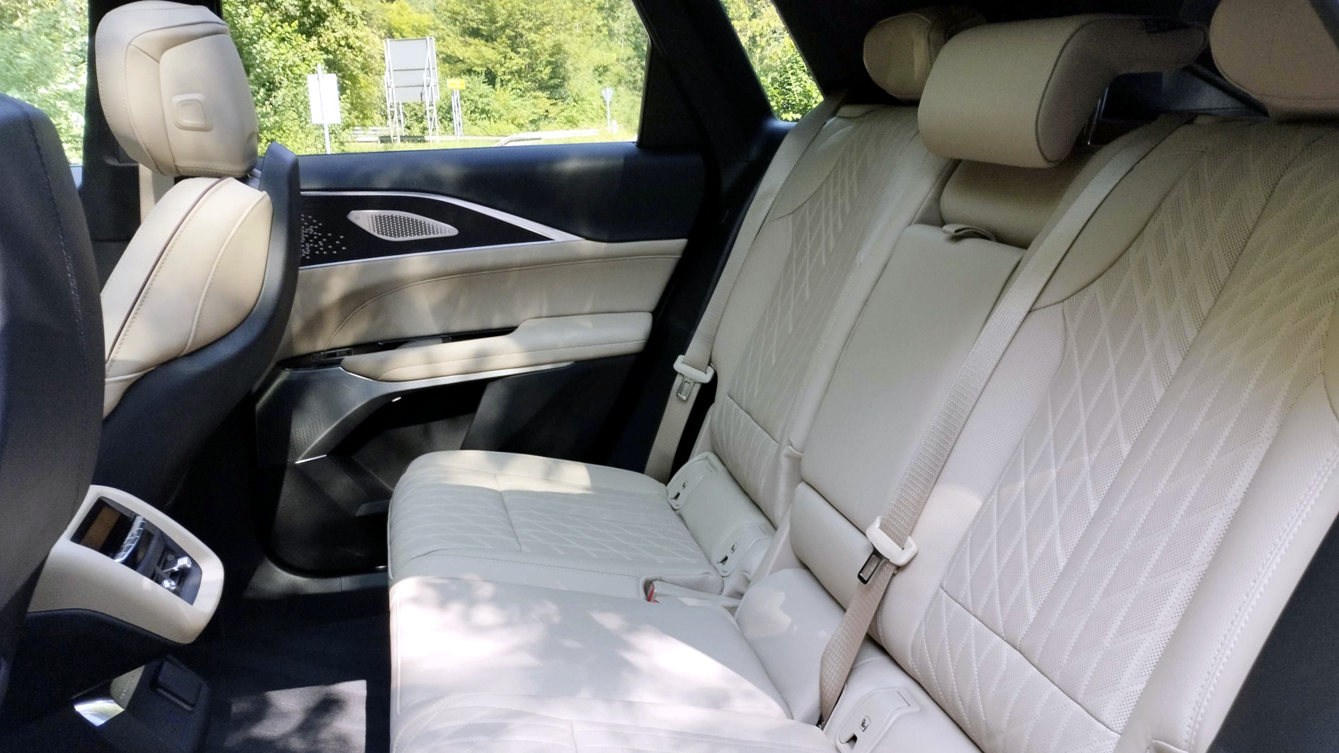 Auch in der zweiten Reihe ist das Platzangebot sehr gut. Da der Mitteltunnel beim E-SUV entfällt, ist der Boden flach. Die Knie- und Beinfreiheit ist mehr als großzügig. Die Kopffreiheit könnte besser sein. Ab einer Körpergröße von 1,80 Meter wird es im Fond etwas eng, da die Dachlinie nach hinten deutlich abfällt.