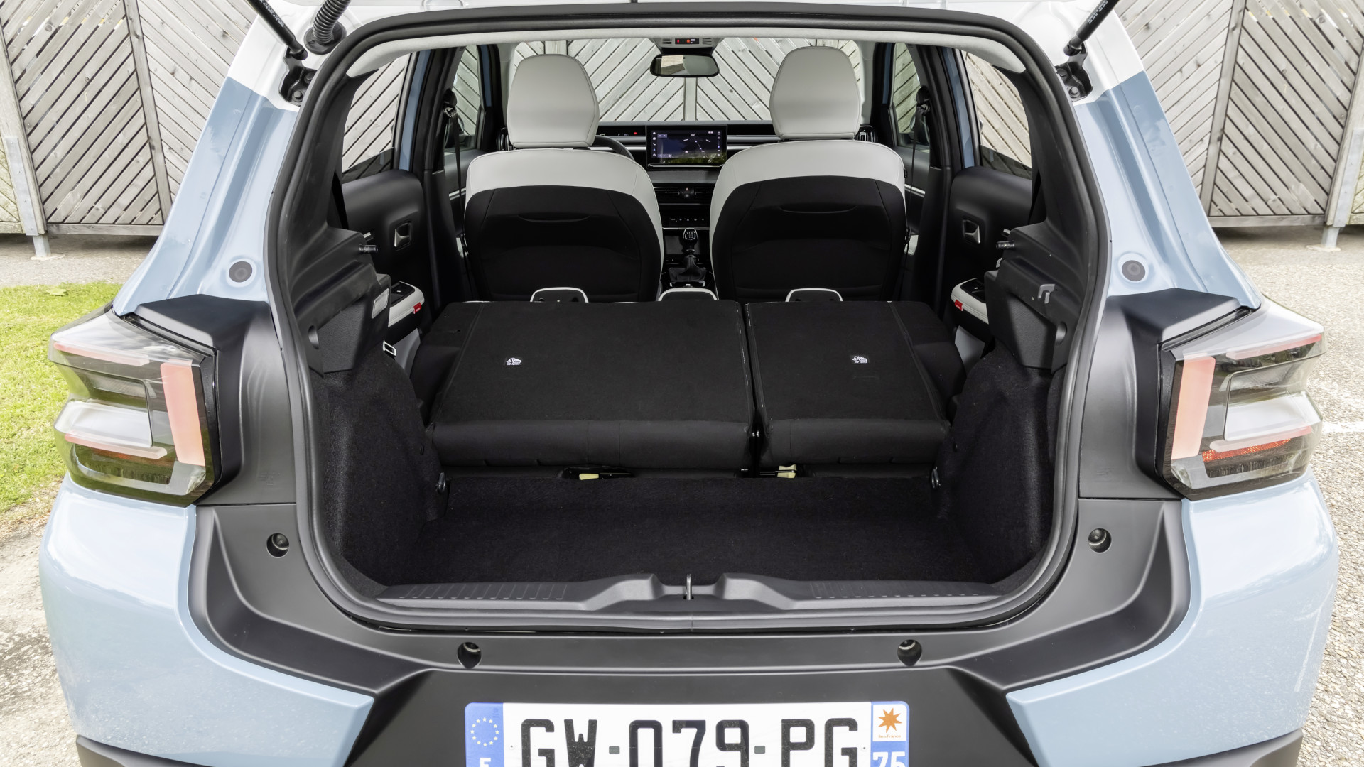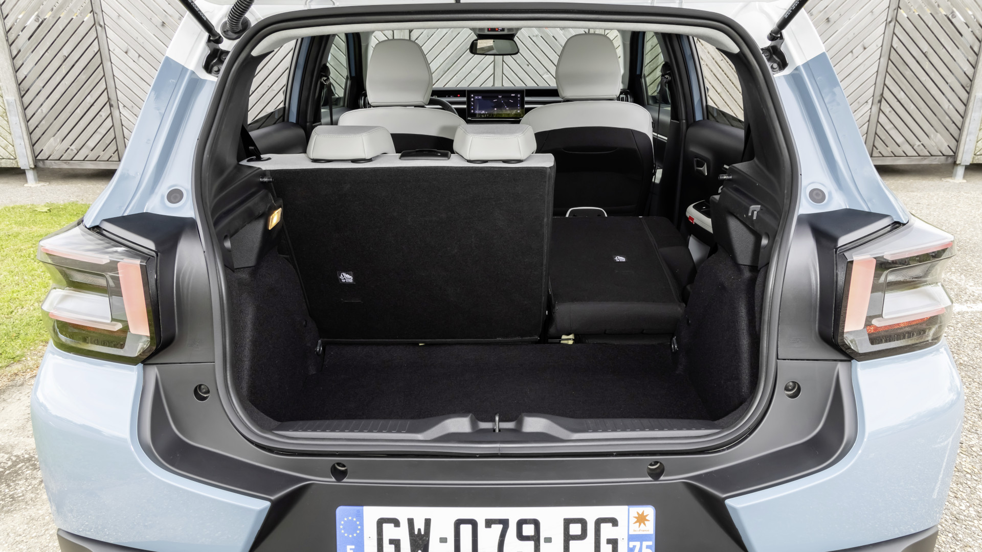 Die Kofferraumkapazität des Citroen C3 ist mit 310 Liter ordentlich und identisch zum elektrischen Modell. Bei umgeklappter Rückbank vergrößert sich das Volumen auf 922 Liter. Nicht so praktisch ist die extrem hohe Ladekante des C3, die weit hinauf ragt und das Beladen erschwert. Zumindest schützt eine Hartplastikverkleidung, dass das Blech beim Beladen verkratzt.