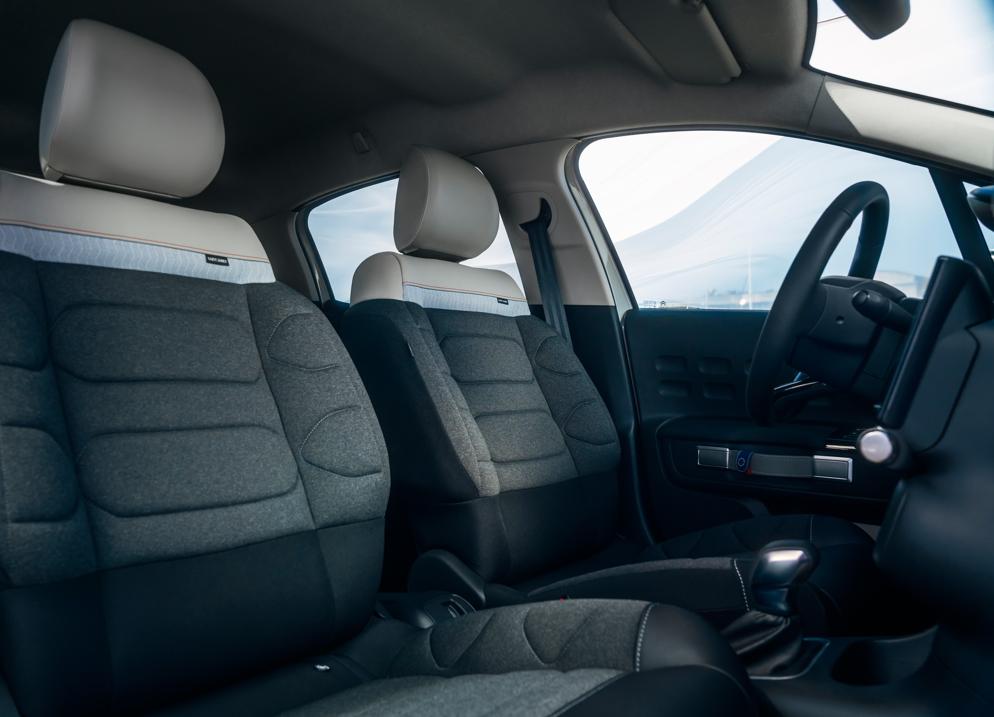 Im Inneren des Citroën C3 verbindet sich praxisorientierte Funktionalität mit dem Nötigsten an Technologie zu einem umfassenden Fahrerlebnis. In der Basisausstattung YOU! umfasst der Innenraum Merkmale wie einen 12-Volt-Anschluss in der Mittelkonsole, elektrisch einstell- und beheizbare Außenspiegel und ein DAB Audio-System mit Bluetooth-Freisprecheinrichtung sowie Lenkradfernbedienung. Hinzu kommen Sicherheitsmerkmale wie der sogenannte Coffee Break Alarm als Müdigkeitswarner und die Spurassistenz, die zur Sicherheit und zum Komfort beitragen. Der Fahrsitz ist in der Höhe verstellbar und die Rücksitzbanklehne kann geteilt (60/40) umgeklappt werden, was den C3 für den Transport mittelgroßer Gegenstände qualifiziert.