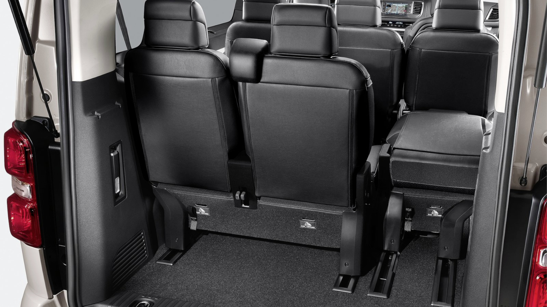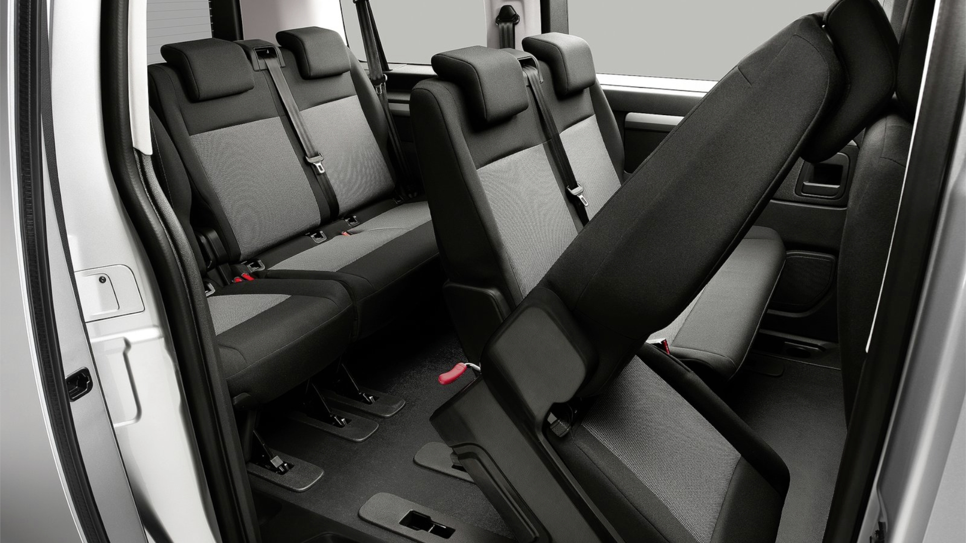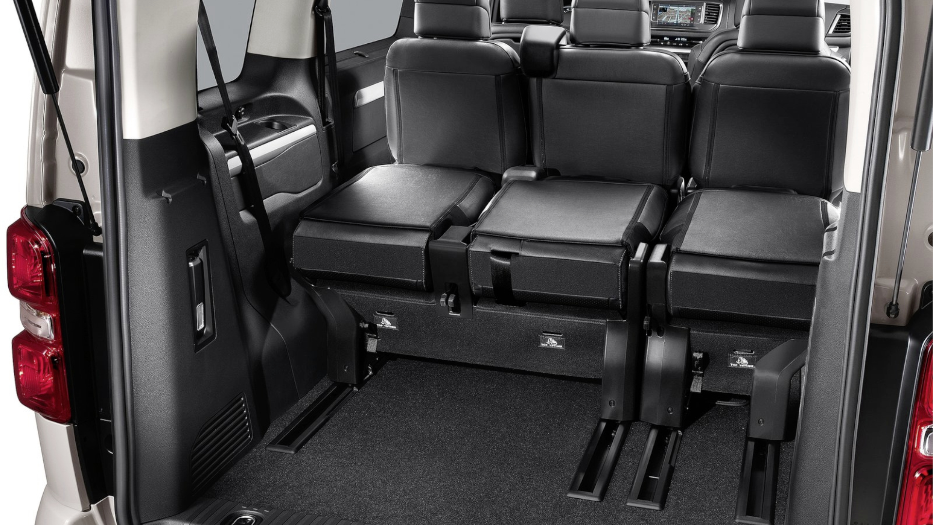 Die hinteren Sitze sind verschieb-, umklapp- und ausbaubar, was weniger Kraft als bei der Konkurrenz erfordert, weil die Sessel weniger wiegen und sich leichter wieder einbauen lassen. Von der Variabilität, dem Platzangebot, den Ablagen, dem Kofferraum und der Zuladung ist der Citroën Spacetourer eine große Nummer.